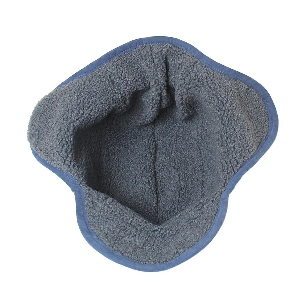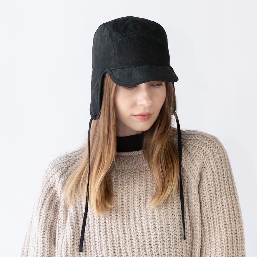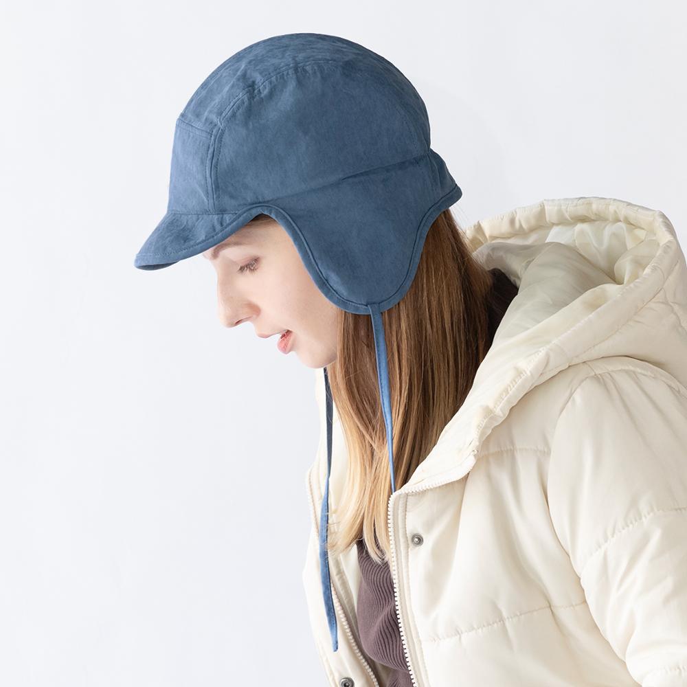 あご紐・耳付きのジェット型キャップです!裏側全体がボア素材になっているので、保温効果があります。あご紐はそのまま垂らしたり、あご下や頭の上で結んだり、つばをおろしたり折ったりなど、お好みのアレンジお楽しみください。後ろはゴムになっているので若干の伸縮が可能です。