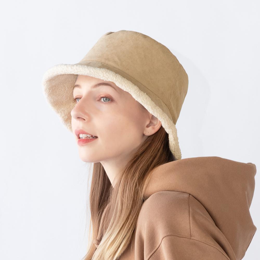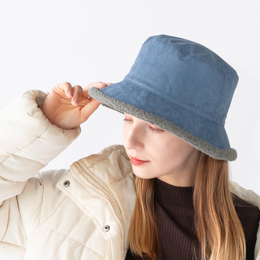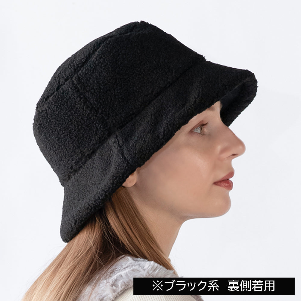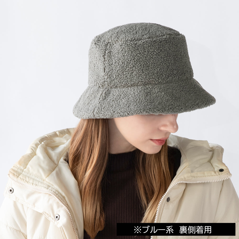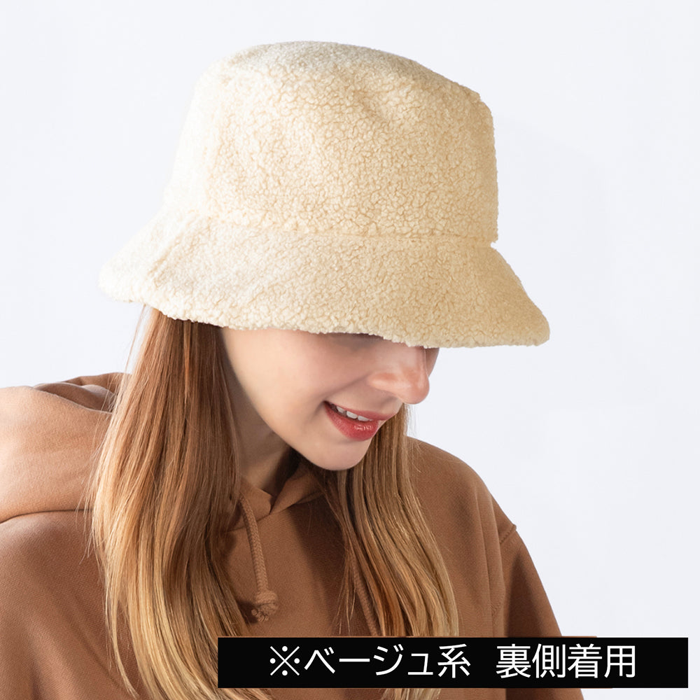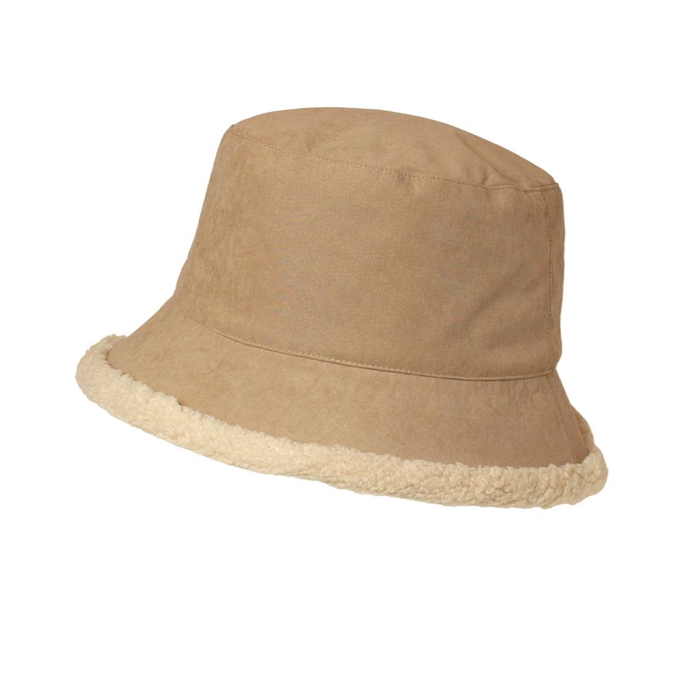 ボアとスエードの2Wayが楽しめるバケットハットです。スエードを表目にしてさらっとシンプルな印象に(つば先のもこもこが印象的!)ボアを表目にしてもこもこカジュアルな印象に(見た目もあったか印象的!)とても軽いので、折りたたんで持ち運びも可能です。