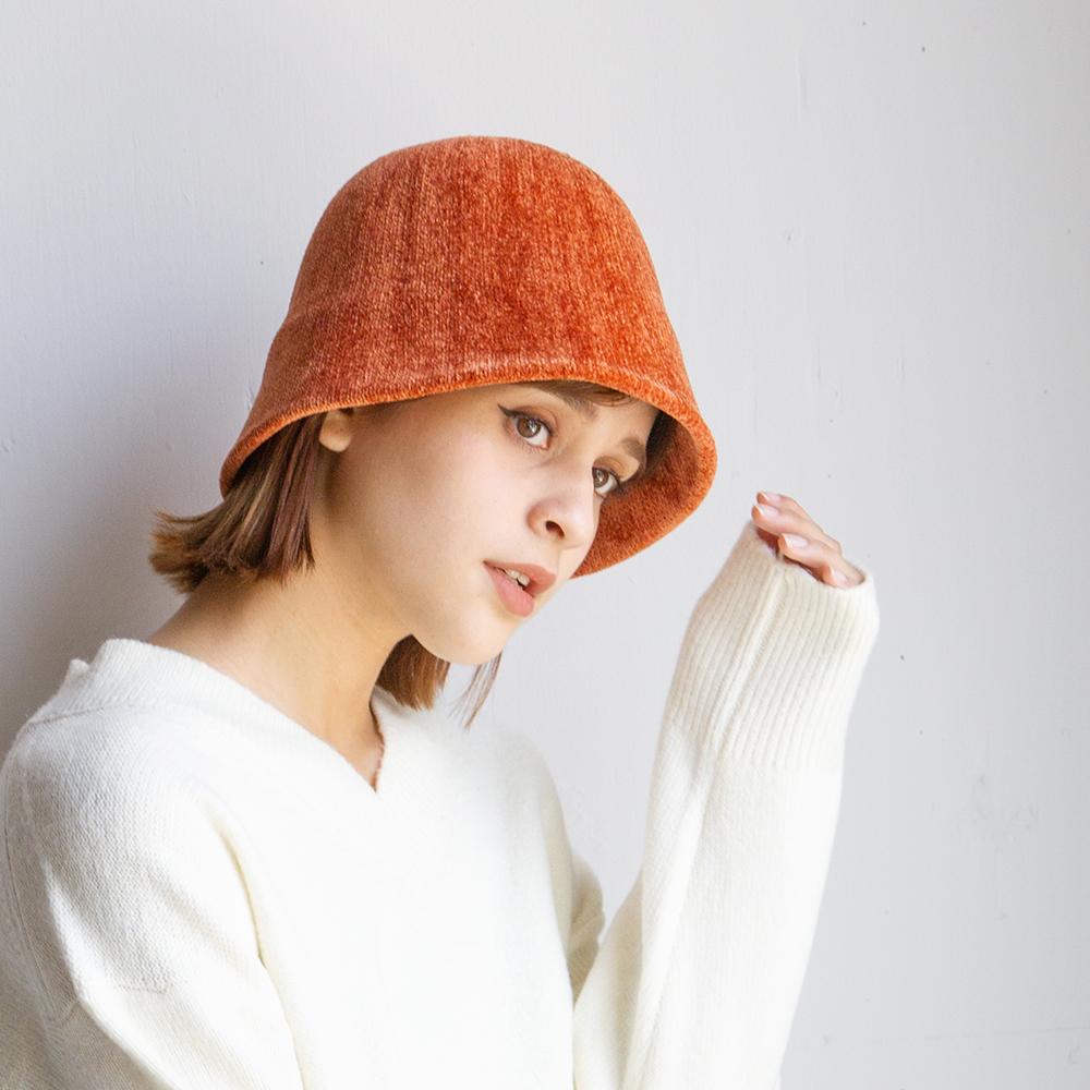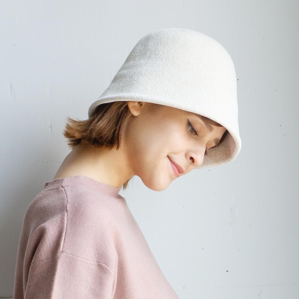 モール糸を使用した肌さわりなめらかな光沢感のあるベルハットです。