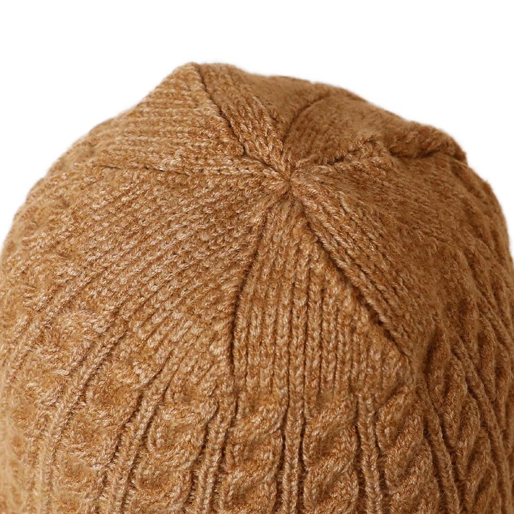 秋冬らしいケーブル編みのニットバケハ風ハット。