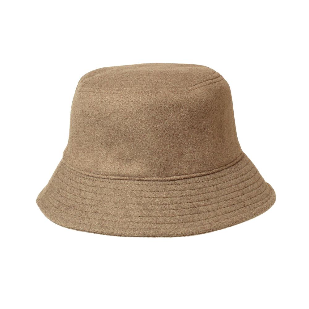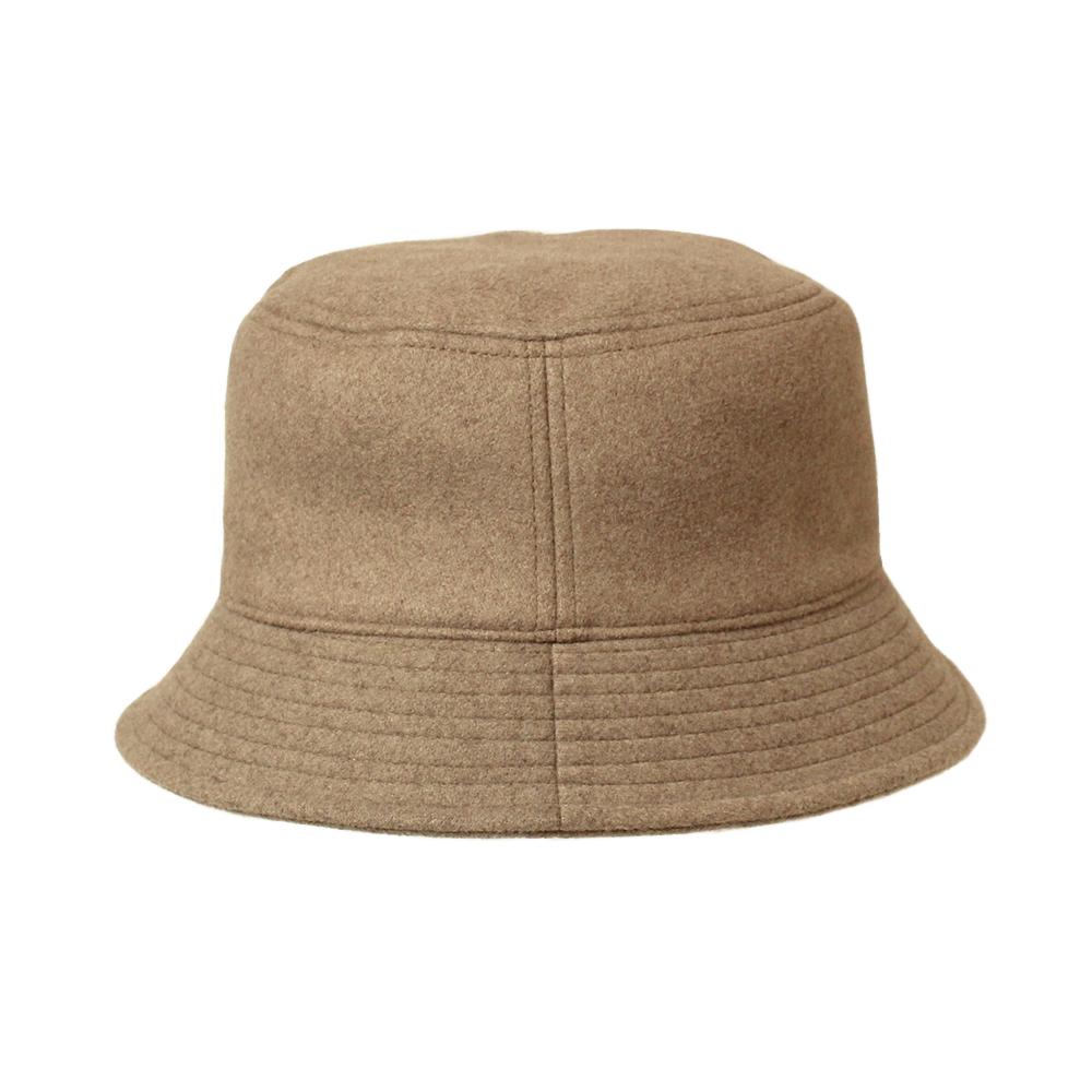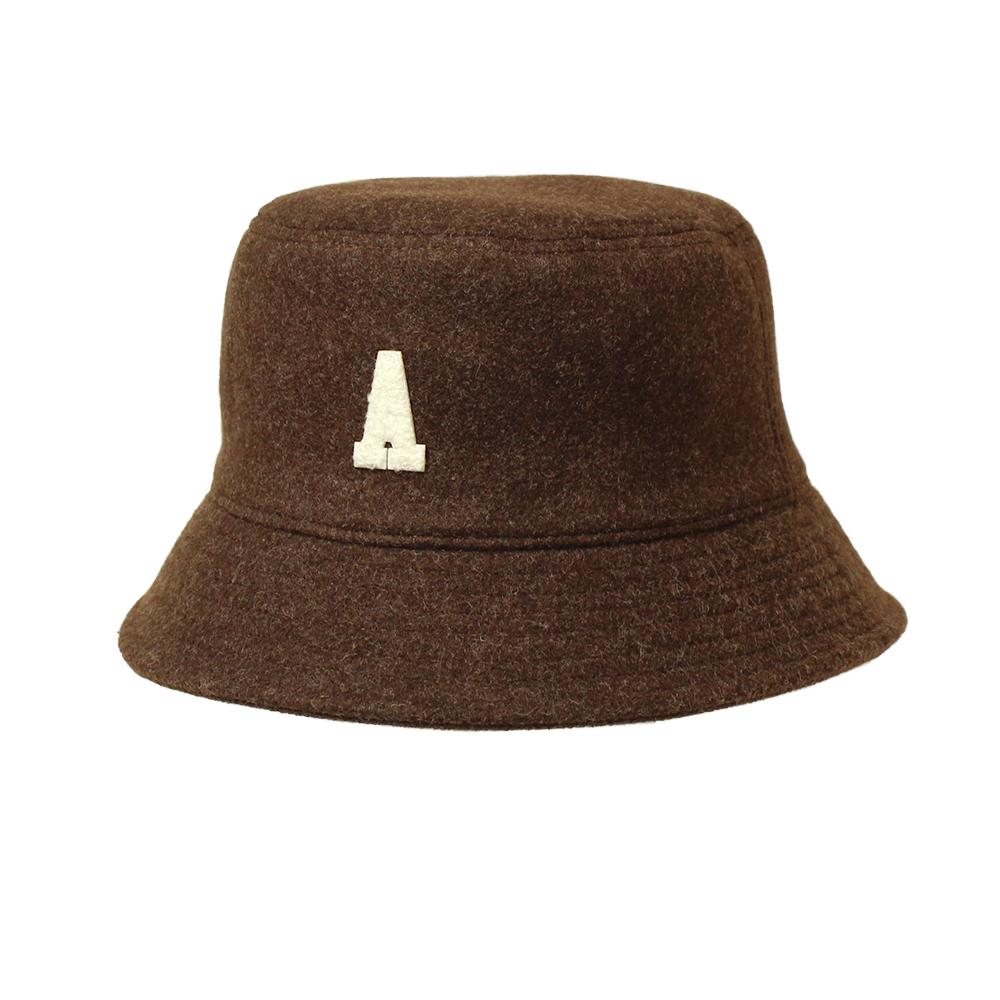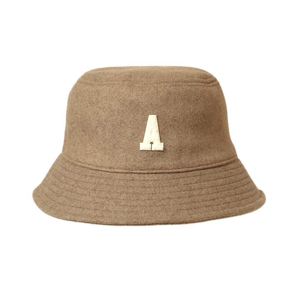 白色のアルファベット「A」ロゴがワンポイントのメルトンバケットハットです。さらさらとなめらかな肌触りの気持ちいい質感です。しわになりにくいので、折りたたんで持ち運びいただけます。内側にあるすべりの裏側には、サイズを調節して頂けるテープが付いていますので ご自分のサイズ感で被って頂けます。