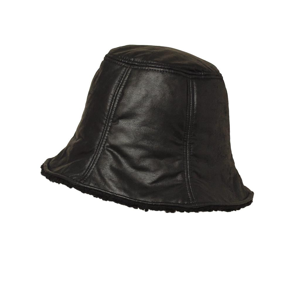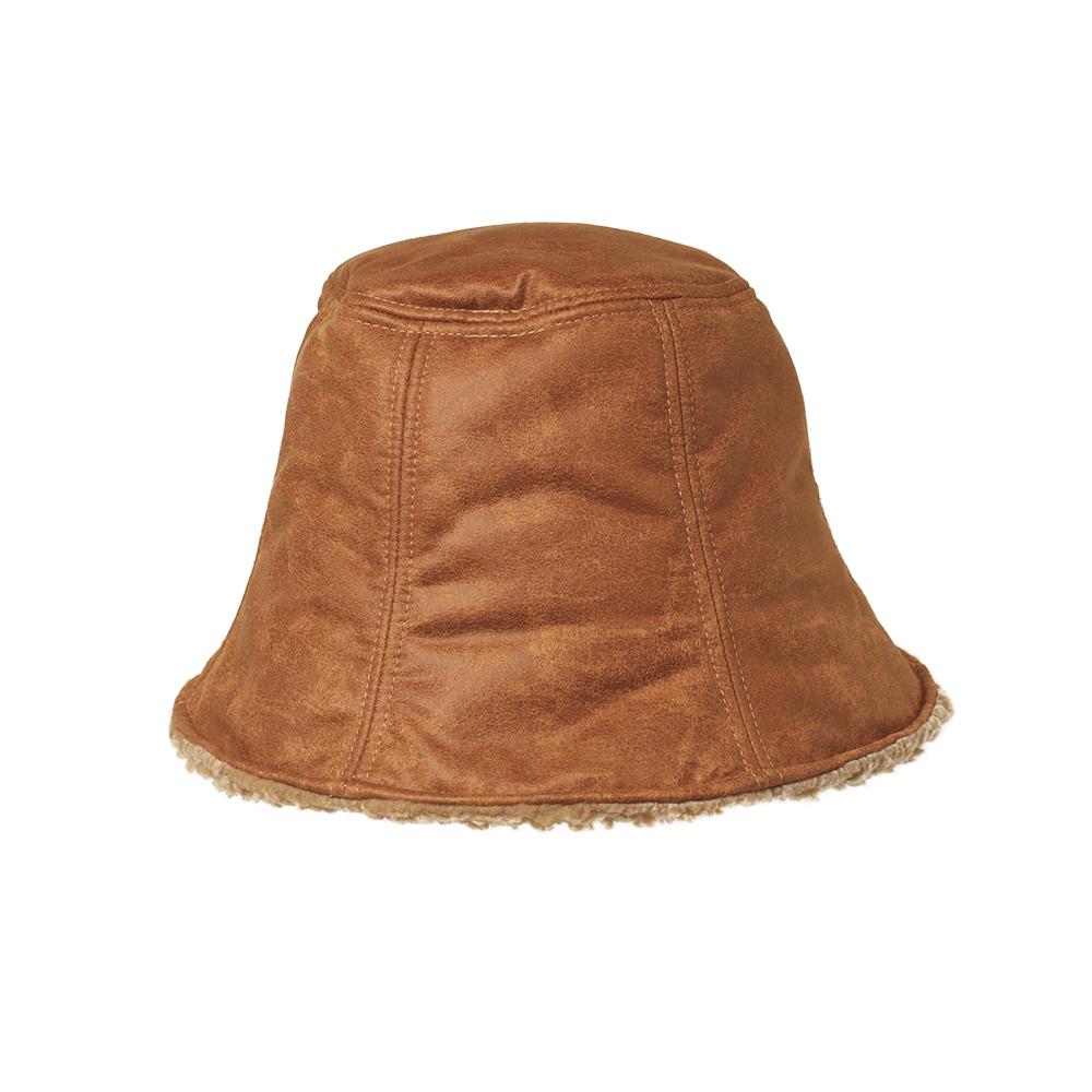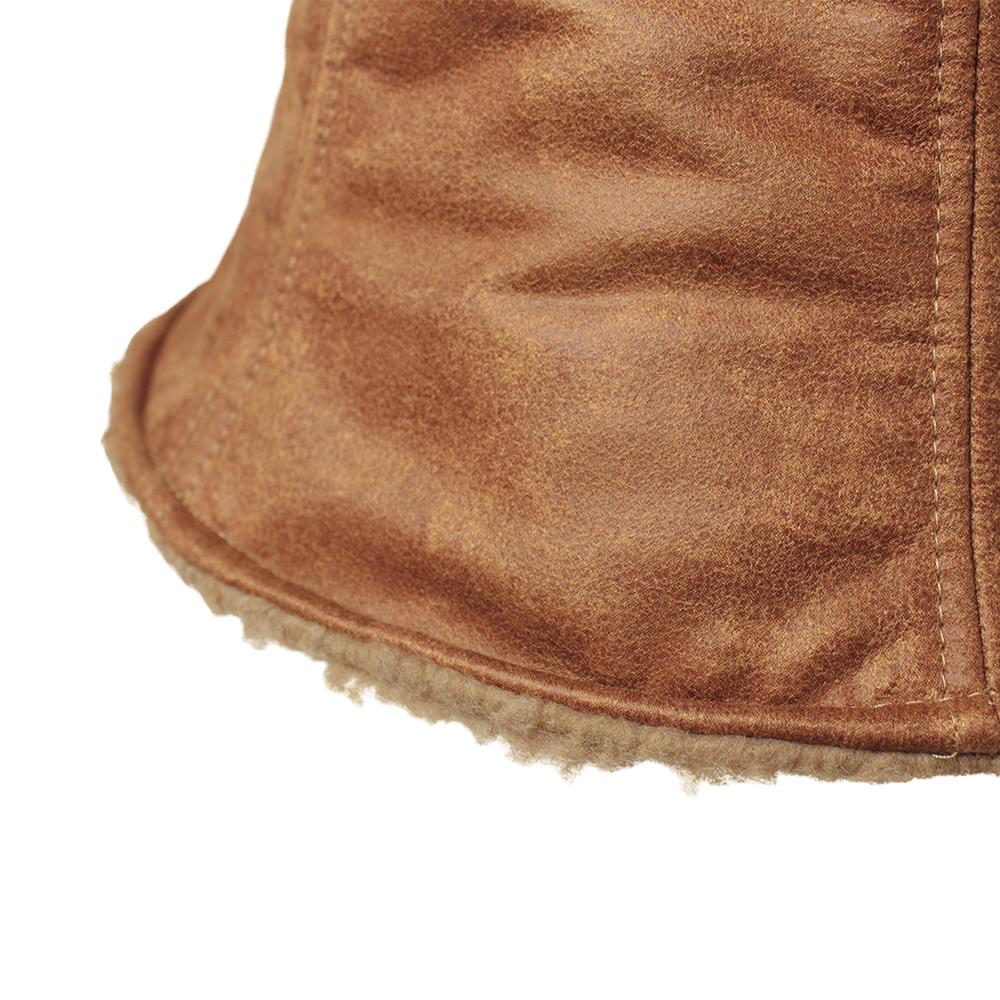 ヴィンテージ感のあるクールなフェイクレザー素材と内側のボアのメリハリのあるチューリップハットです。内側に温かなボアがあるので、サッとかぶるだけで秋冬コーデの主役になってくれます。つば先にはワイヤーが入っていますので、お好みのつばの形にしていただけます。内側にあるすべりの裏側には、サイズを調節して頂けるテープが付いていますので ご自分のサイズ感で被って頂けます。
