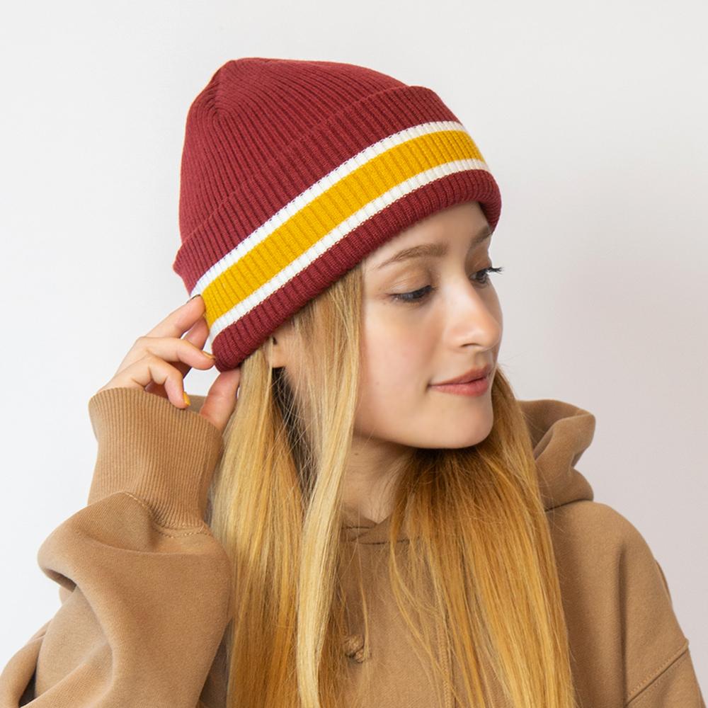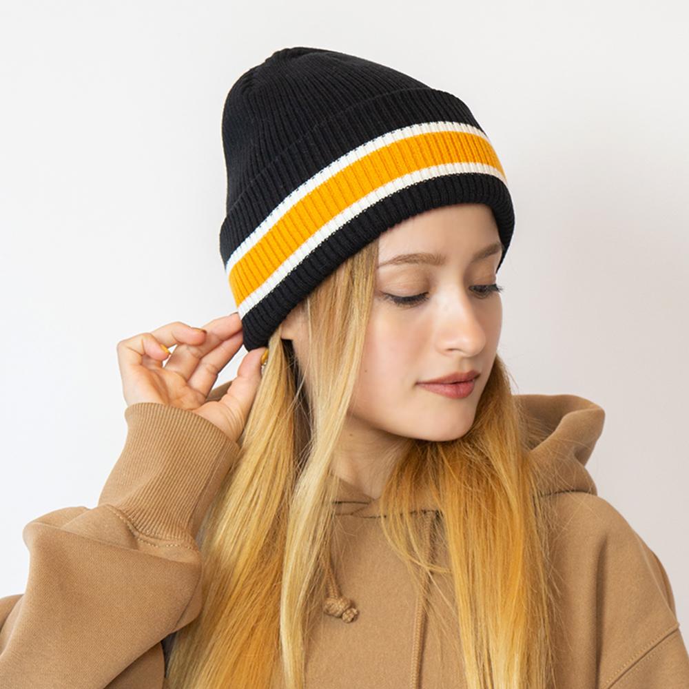カジュアルコーデにぴったりのカレッジカラーのニット帽。豊富なカラーバリエーションも魅力です☆静電気がおきにくい糸を使用されているのもうれしいポイント◎