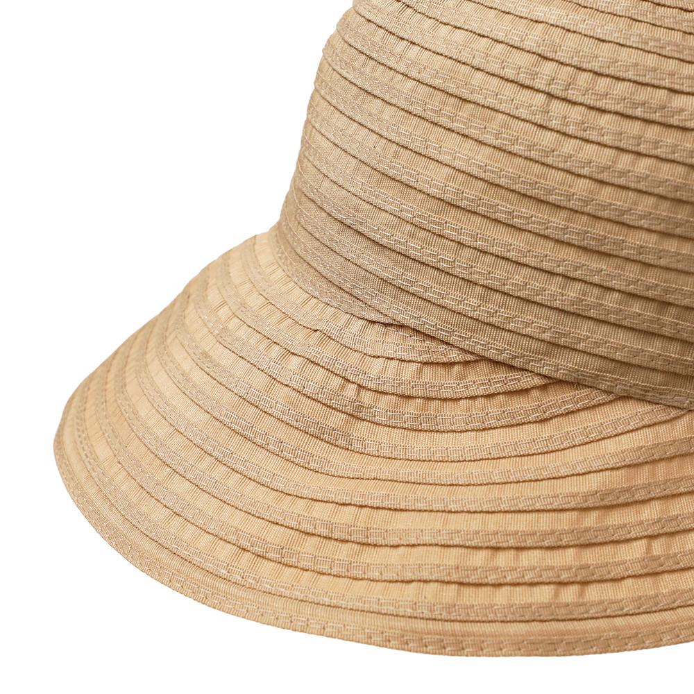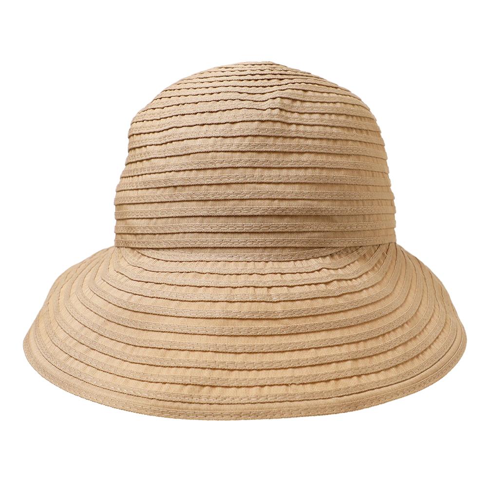 幅広のつばでUVケアもばっちりなエレガントハット。シンプルかつ軽めの素材感で折り畳んで持ち運ぶことも可能◎前の部分を少し折って被るアレンジもオススメです!後ろはゴム仕様になっているので若干の伸縮が可能です。丸洗いが可能で、かつ抗菌消臭加工を施しているので、汗をかく季節のお出掛けに最適です。