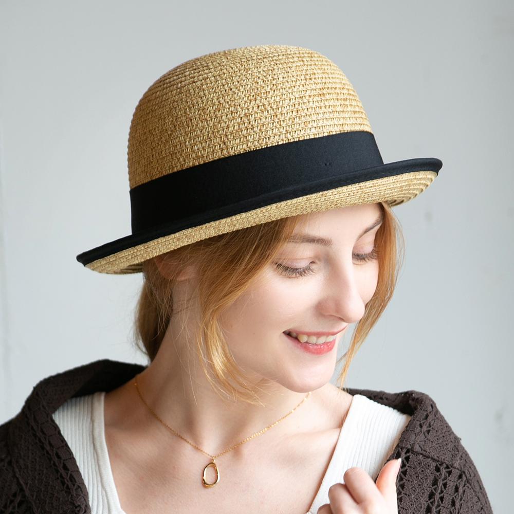 サイドのリボンが大人可愛いボーラーハットです。シンプルなデザインで春夏コーデに取り入れやすいアイテム。内側にあるすべりの裏側には、サイズ調整のテープはゴム仕様になっていますので、ご自分のサイズ感で被って頂けます。