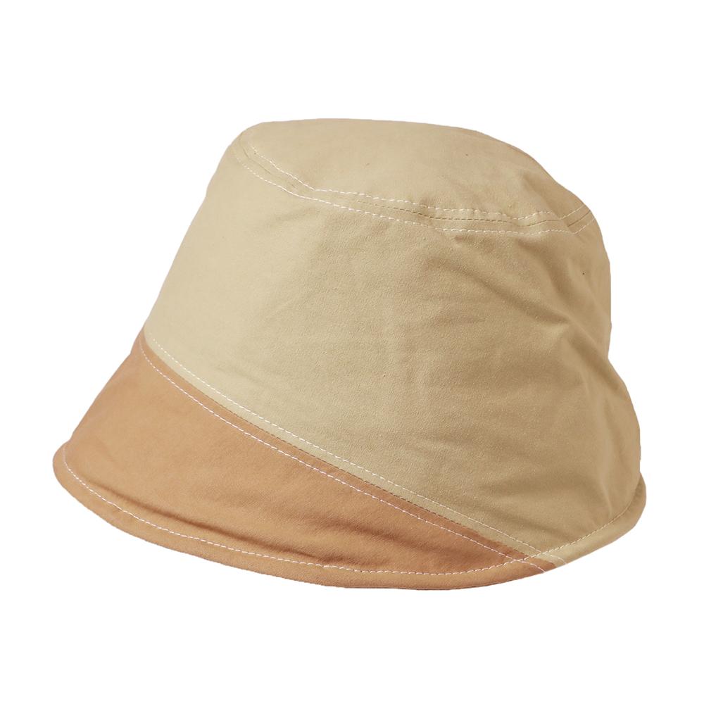 ツートンカラーで大人可愛いチューリップハットです。斜めハギのシルエットで小顔効果も期待でき、つば先に入ったワイヤーでアレンジもできます。内側にあるすべりの裏側には、サイズを調節して頂けるテープが付いていますのでご自分のサイズ感で被って頂けます。