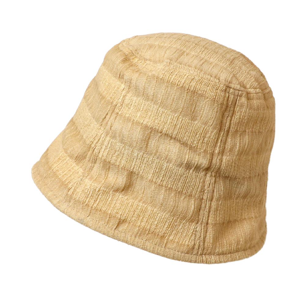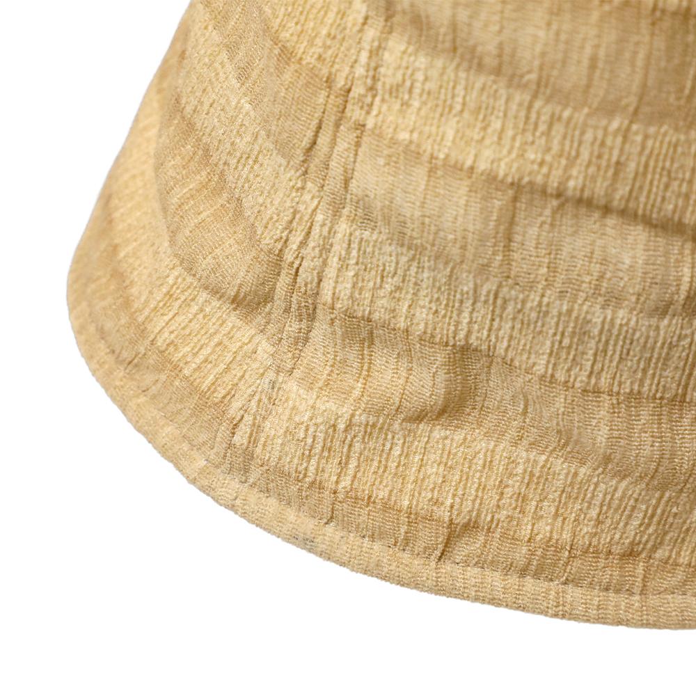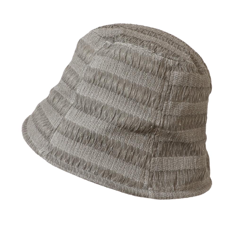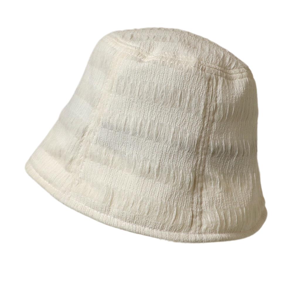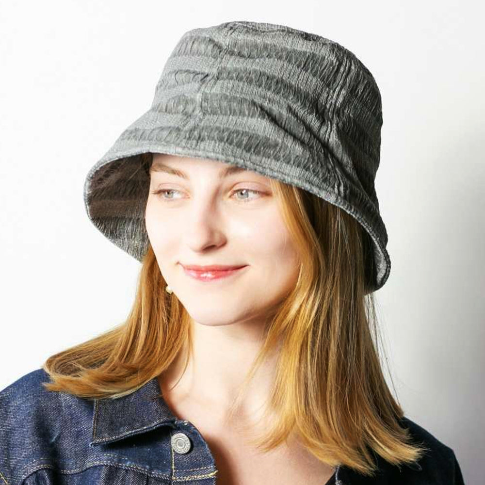 シャーリング加工が涼しげな印象のチューリップハットです。つば先にはワイヤーが入っていますのでお好みの形に整えて楽しめます。とても柔らかいので折り畳んでの持ち運びにも便利!内側にあるすべりの裏側には、サイズを調節して頂けるテープが付いていますのでご自分のサイズ感で被って頂けます。