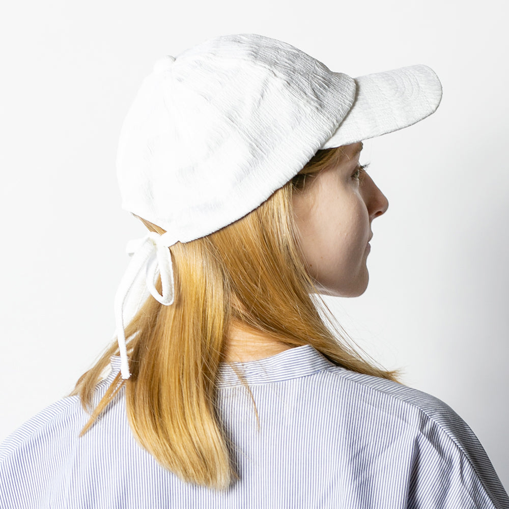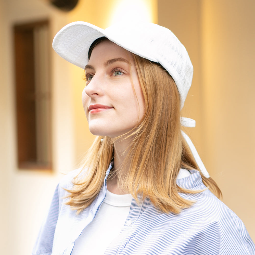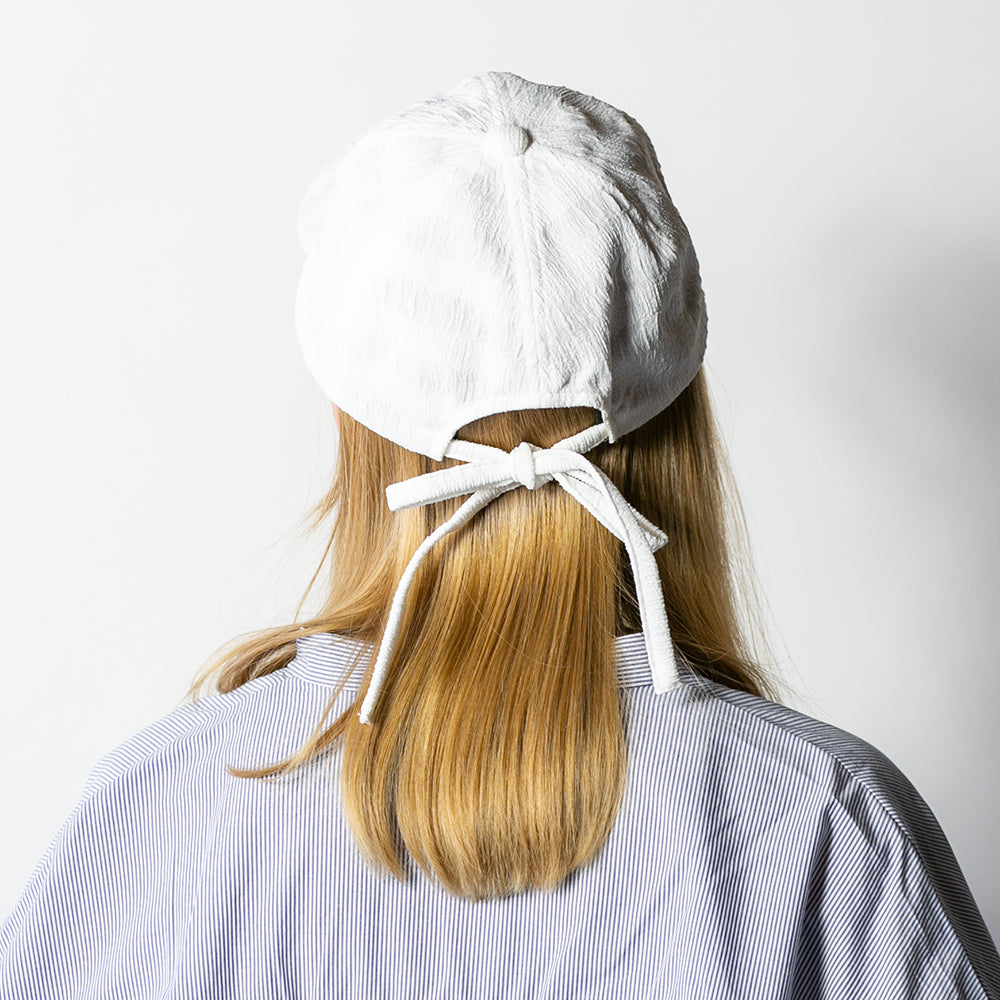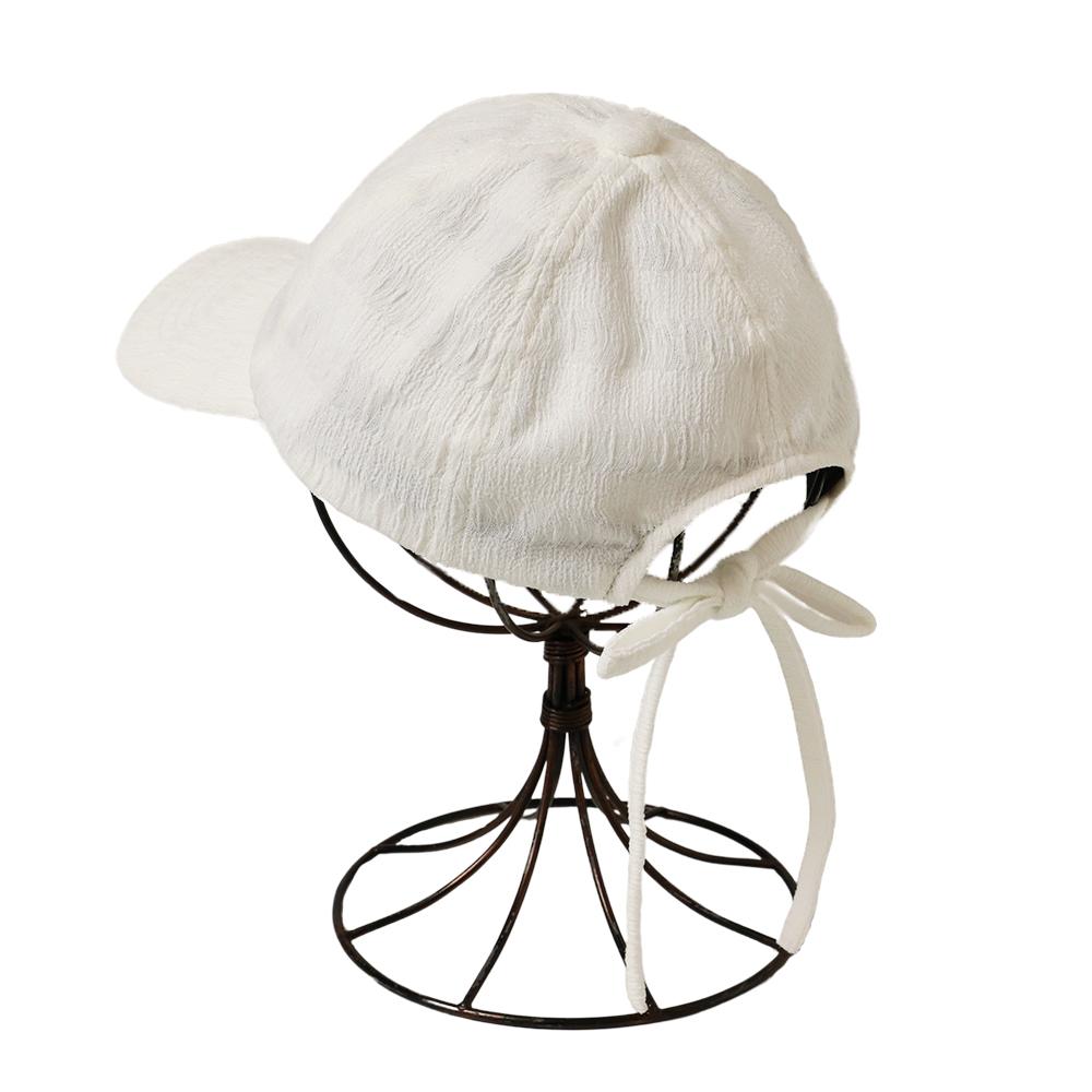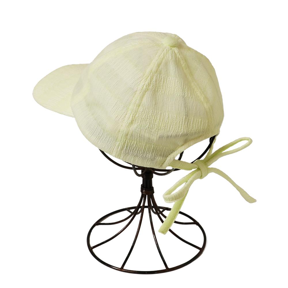 シャーリング加工が涼しげな印象のストライク柄キャップです。薄手でとても軽い生地を使用しており、暑い夏も快適!バックリボンが後ろ姿も可愛くキメてくれます。同じシリーズのチューリップハット(品番:103535)もありますのでシリーズ違いで被っていただくこともおすすめです。