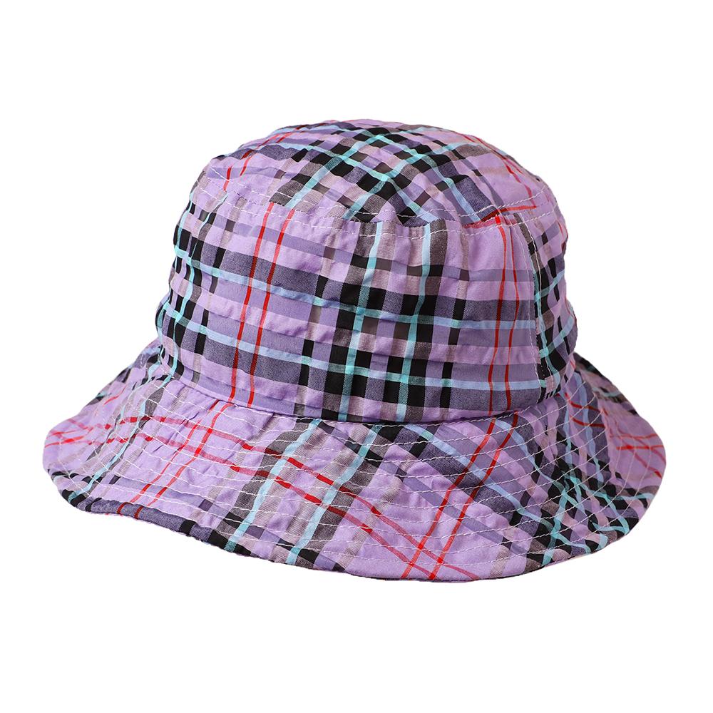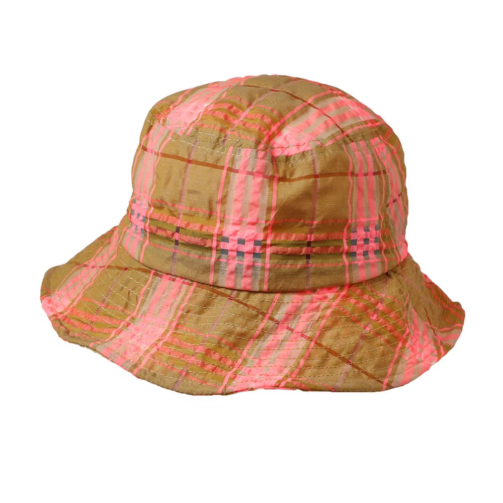 シャーリング加工が涼しいチェック柄バケハです。薄手でとても軽い生地を使用しており、暑い夏も快適!つば先にはワイヤーが入っていますのでお好みの形に整えて楽しめます。同じシリーズのキャップ(品番:103539)もありますのでお揃いやシリーズ違いで被っていただくこともおすすめです。内側にあるすべりの裏側には、サイズを調節して頂けるテープが付いていますのでご自分のサイズ感で被って頂けます。