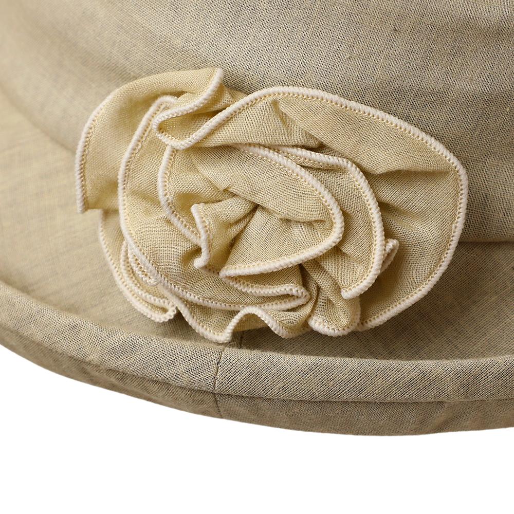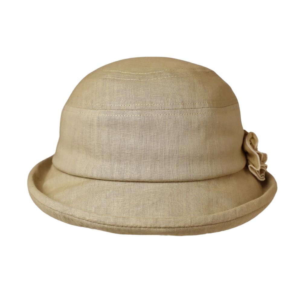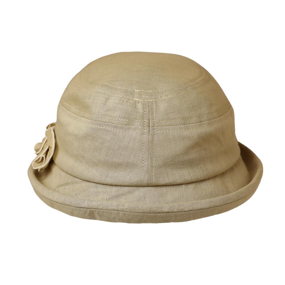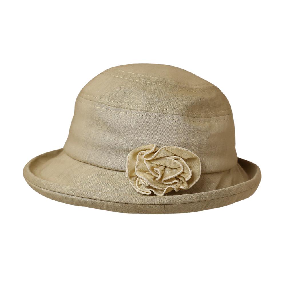 くるんと丸まったふくれつばと、サイドについている上品なコサージュもポイントです。手洗いも可能なので、いつでも清潔に保って頂けます。