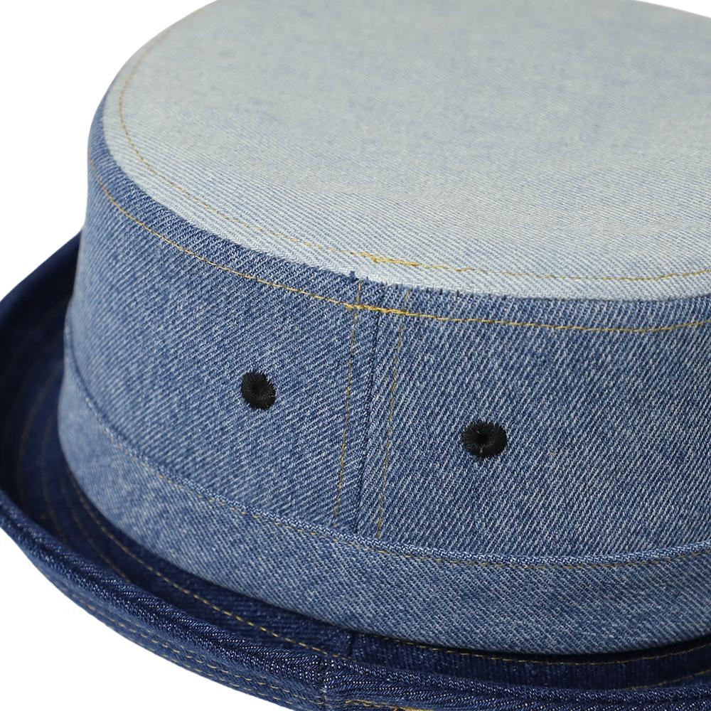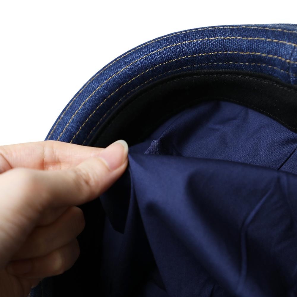 デニム素材がカジュアルで大人可愛いポークパイハット。とても軽やかな被り心地で普段のコーデにも取り入れやすい、大人のカジュアルアイテムです。内側にあるすべりの裏側には、サイズを調節して頂けるテープが付いていますのでご自分のサイズ感で被って頂けます。