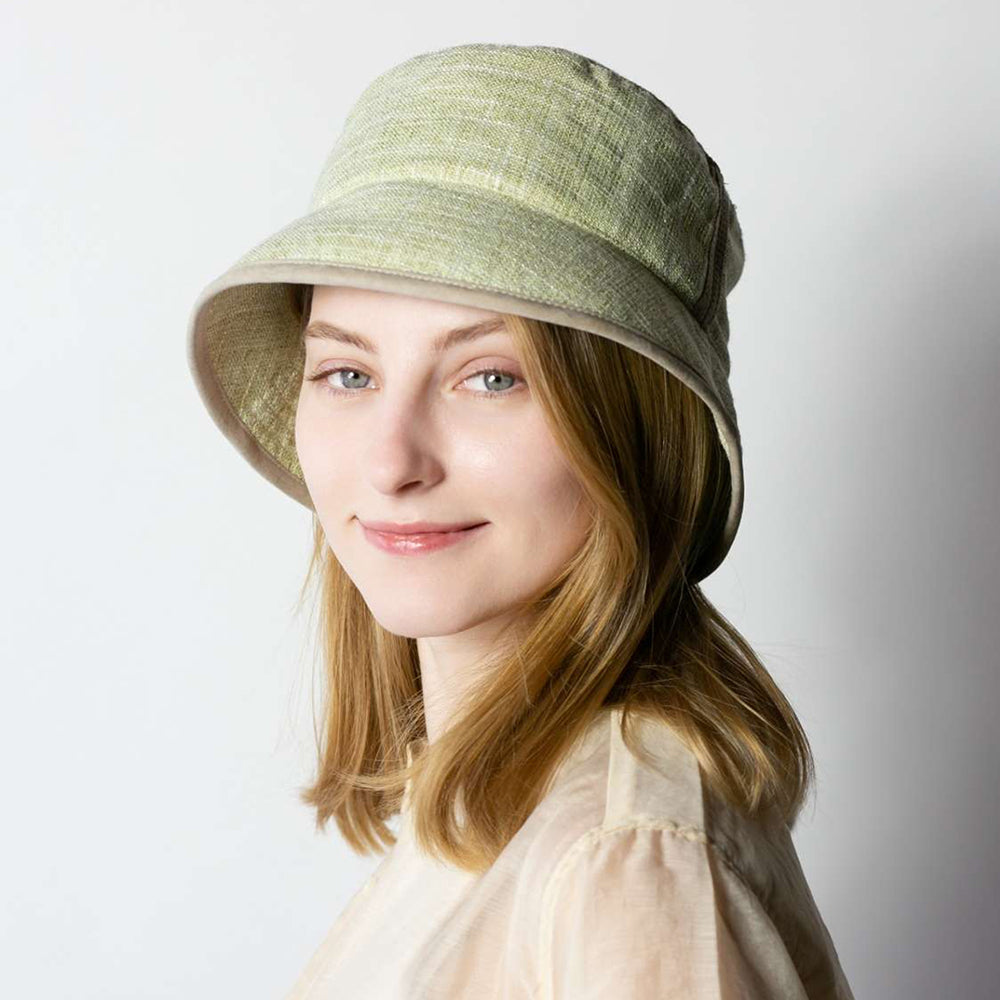 春夏にぴったりのサマーツイードハットです。トレンド感のあるダウンシルエットと、ヘアアレンジを楽しめる後ろ割れデザインが特徴。コンパクトに折りたたんでの持ち運びにも便利です。内側にあるすべりの裏側には、サイズを調節して頂けるテープが付いていますので ご自分のサイズ感で被って頂けます。