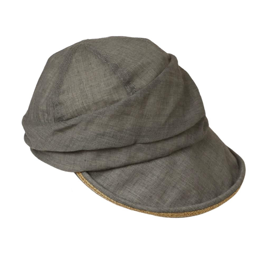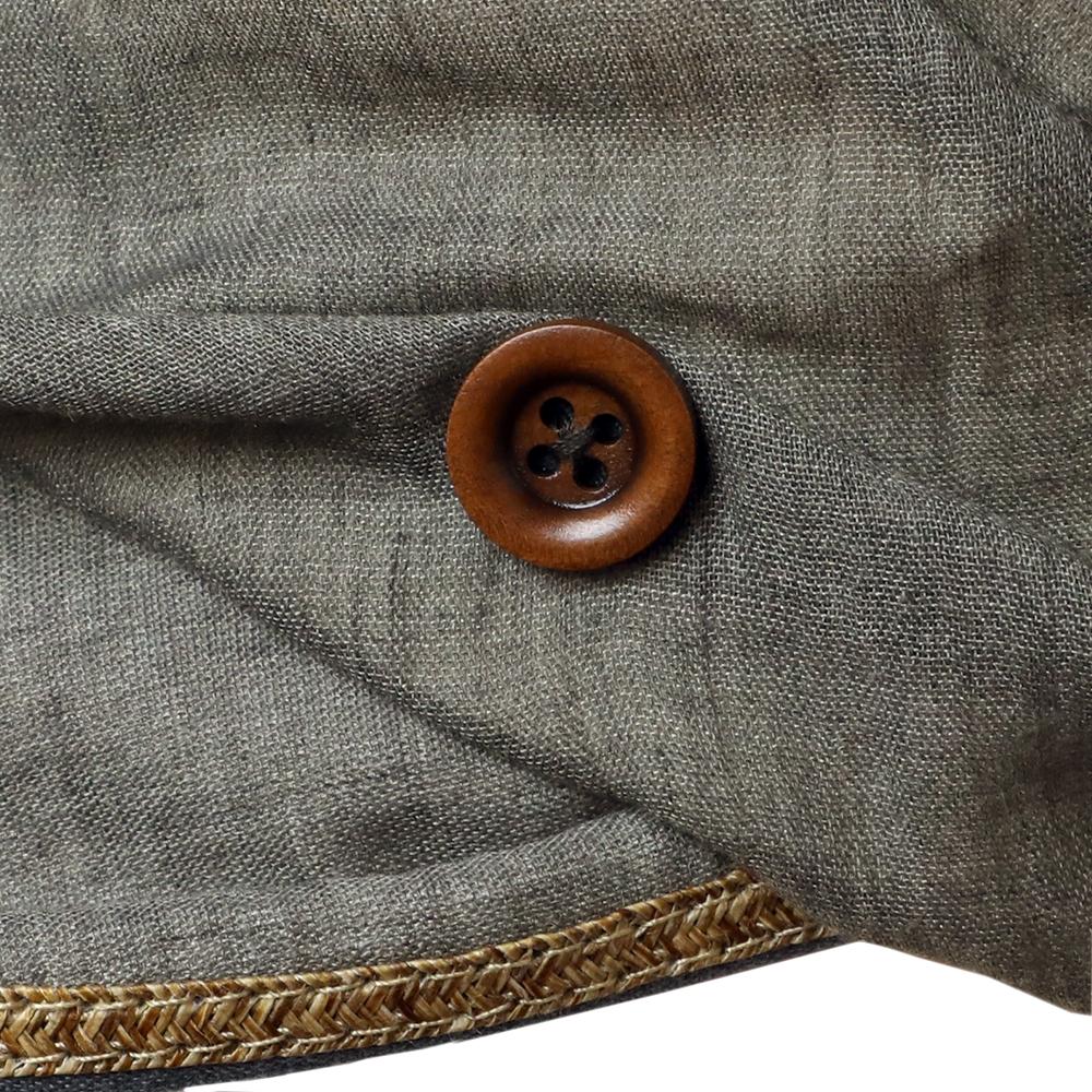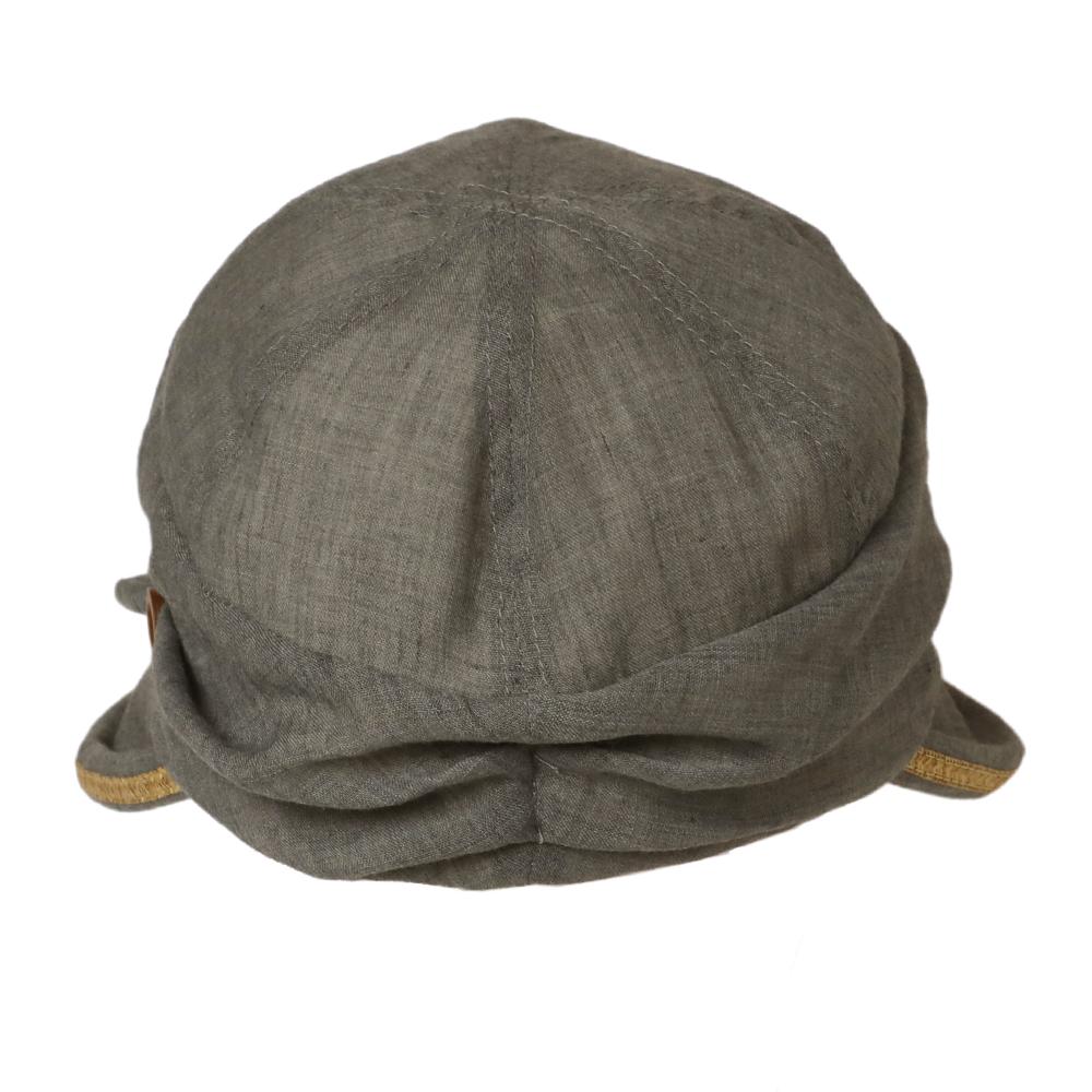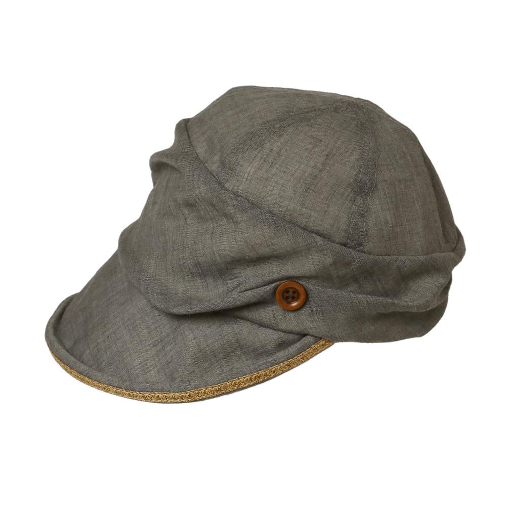 日差しの気になる季節に最適なジョッキーキャスケットです。くるんと丸まったツバ先とタックの入ったふっくらデザインがポイント!ツバ先に施されたブレード素材のラインや、サイドのボタンも可愛いアクセントに。内側にあるすべりの裏側には、サイズを調節して頂けるテープが付いていますので ご自分のサイズ感で被って頂けます。