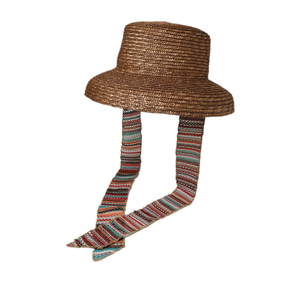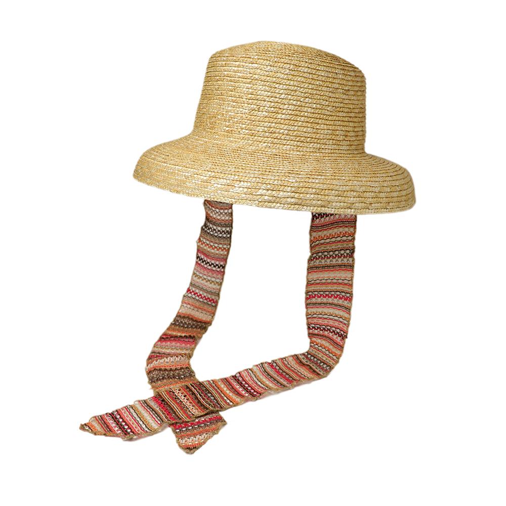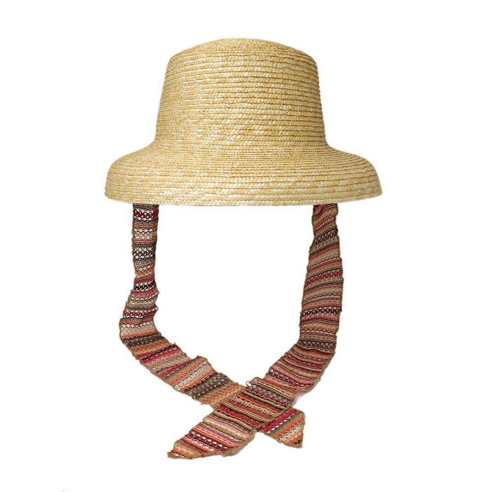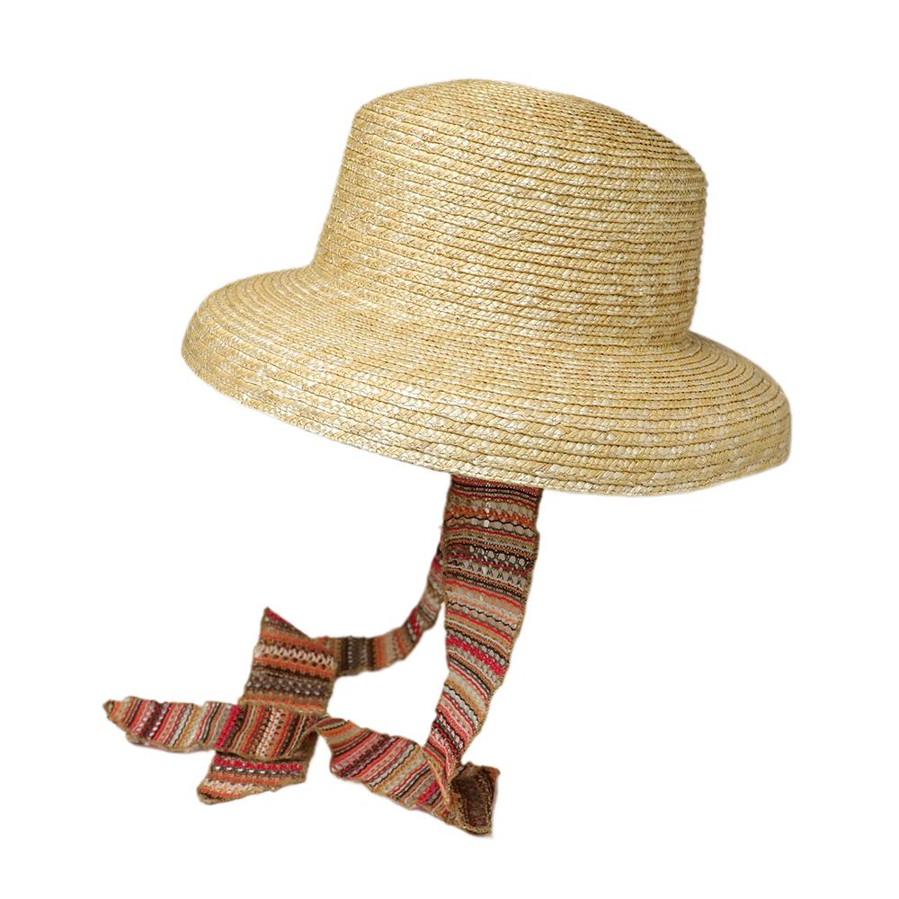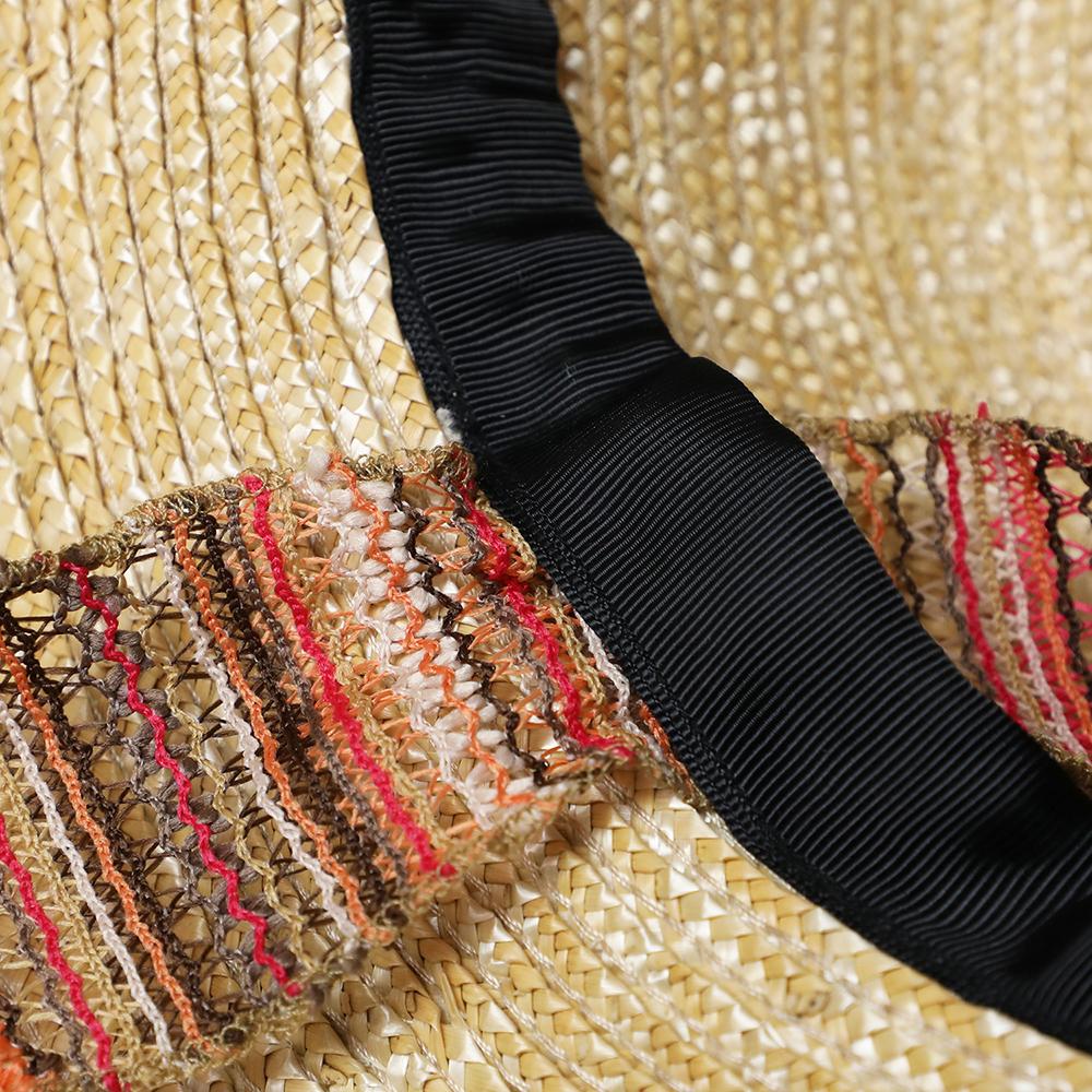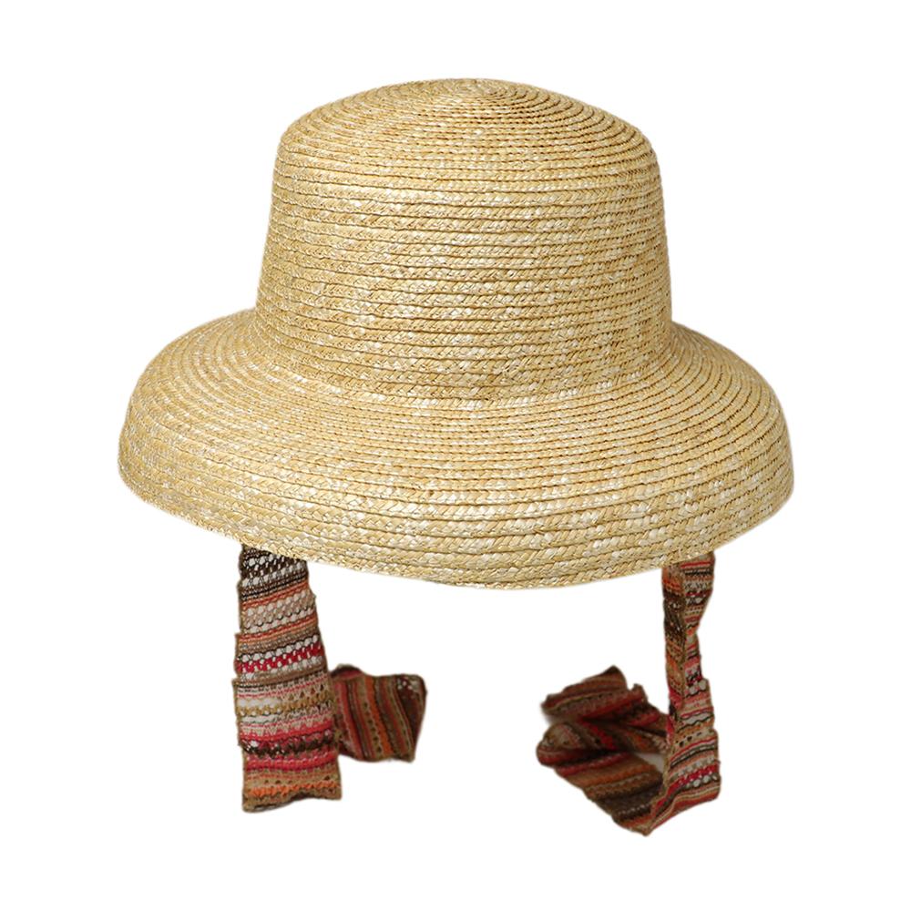 普段のコーデに合わせるだけで夏のリゾートスタイルができあがるストローハット。リボンは取り外し可能なので雰囲気を変えて被って頂けます。内側にあるすべりの裏側には、サイズを調節して頂けるテープが付いていますのでご自分のサイズ感で被って頂けます。
