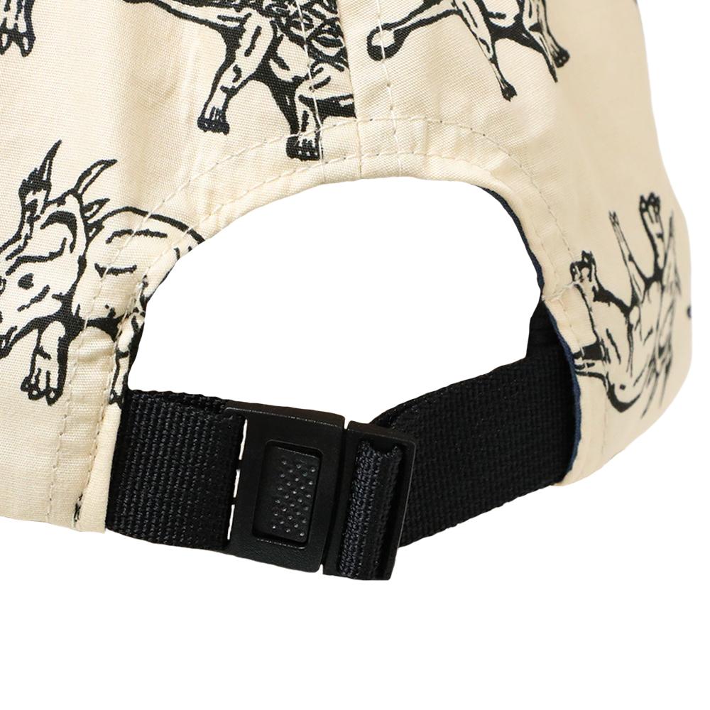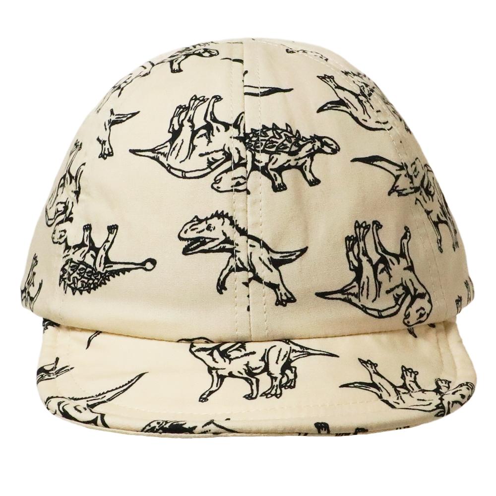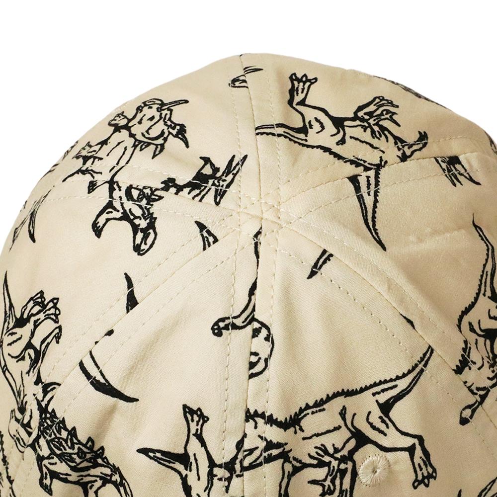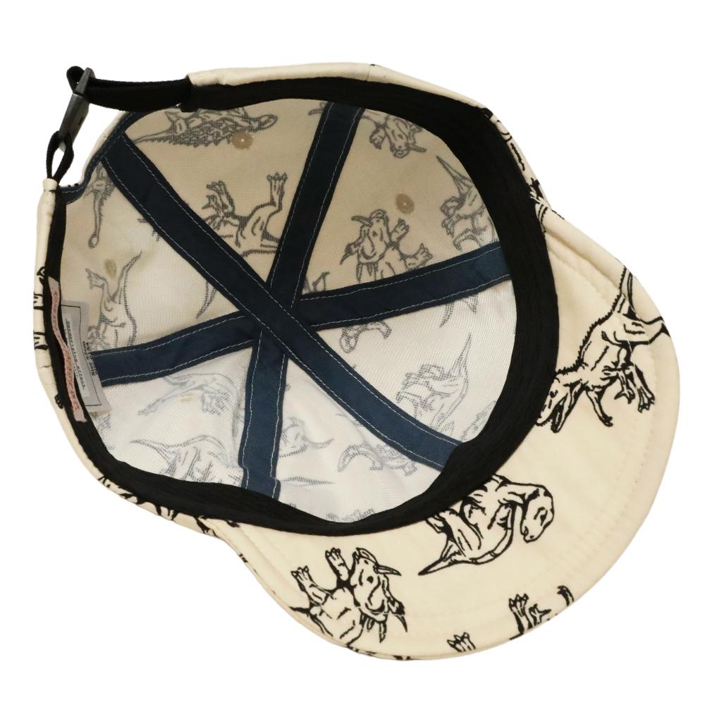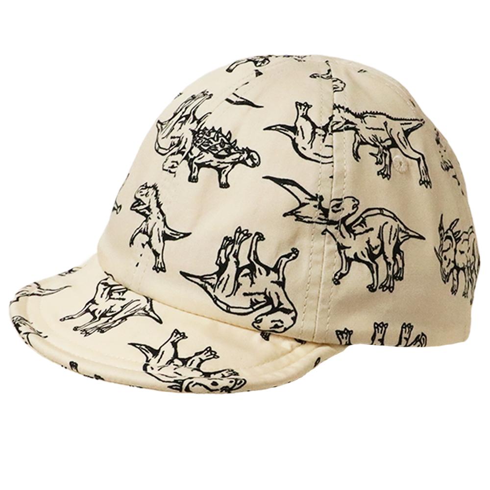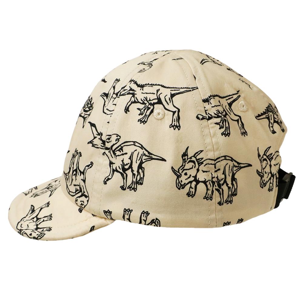コットン100%で柔らかい素材のキッズ用キャップです。恐竜の総柄プリントが、子供らしい冒険心くすぐるお洒落なデザイン♪汗止め部分に吸水速乾機能のある素材を使っていて、いつでも快適な被り心地◎後ろのベルトでサイズ調節可能なので、ちょうど良いサイズ感に合わせて頂けます。