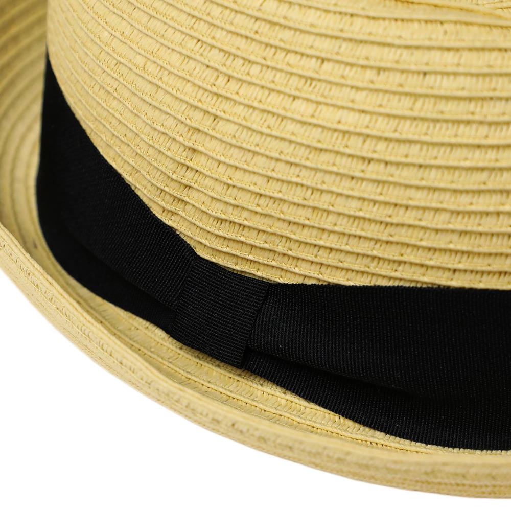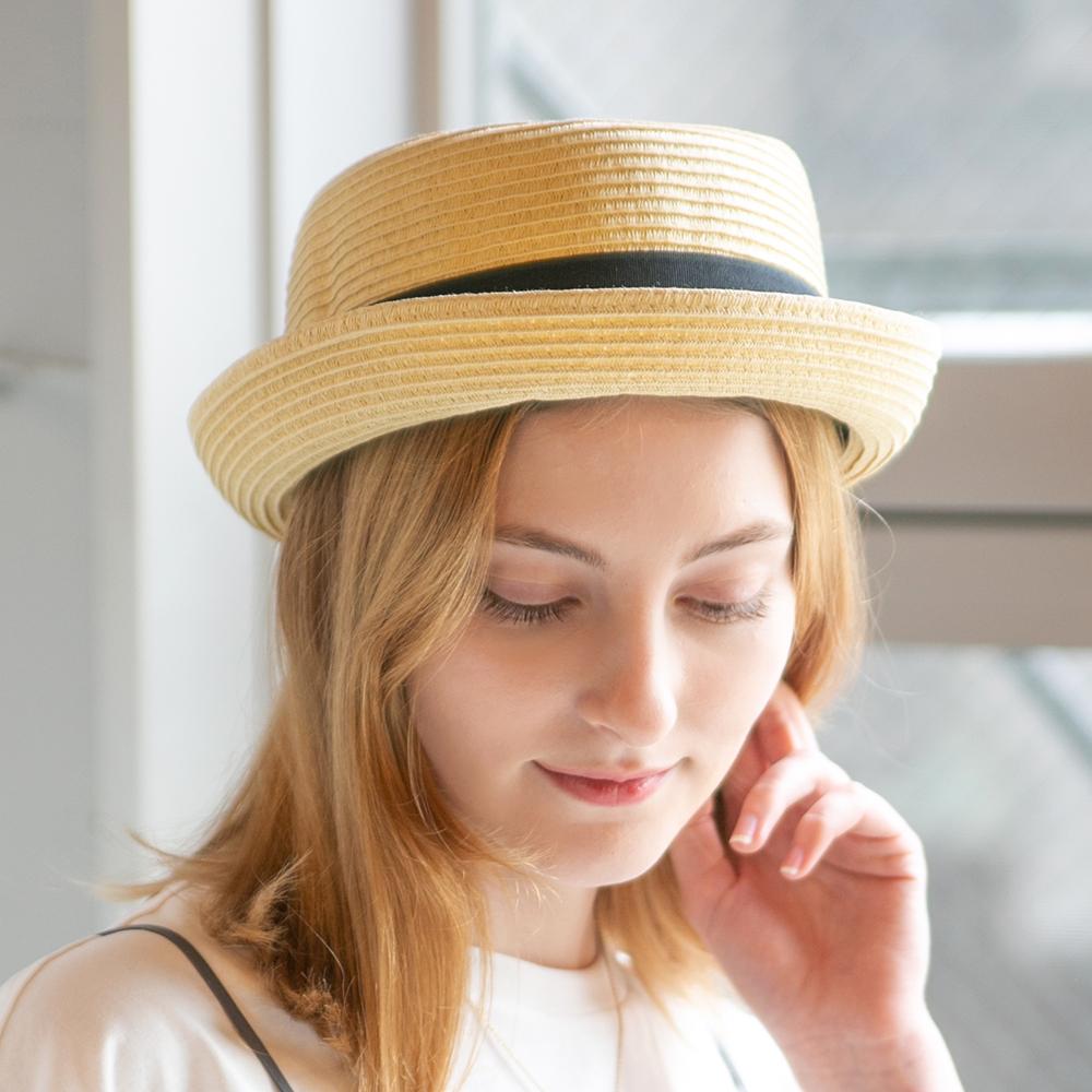 ペーパー素材の爽やかなポークパイハット。シンプルなデザインで普段のコーデにも取り入れやすい、大人のカジュアルアイテムです。内側にあるすべりの裏側には、サイズ調整のテープはゴム仕様になっていますので、ご自分のサイズ感で被って頂けます。