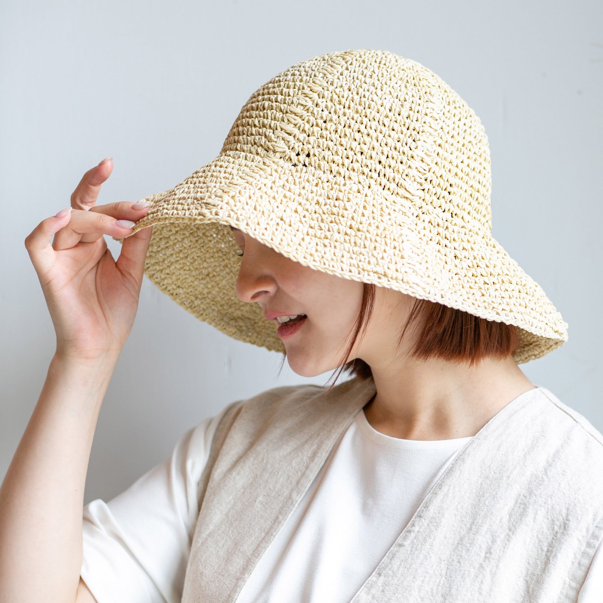 ナチュラルなペーパー素材のチューリップハット。
