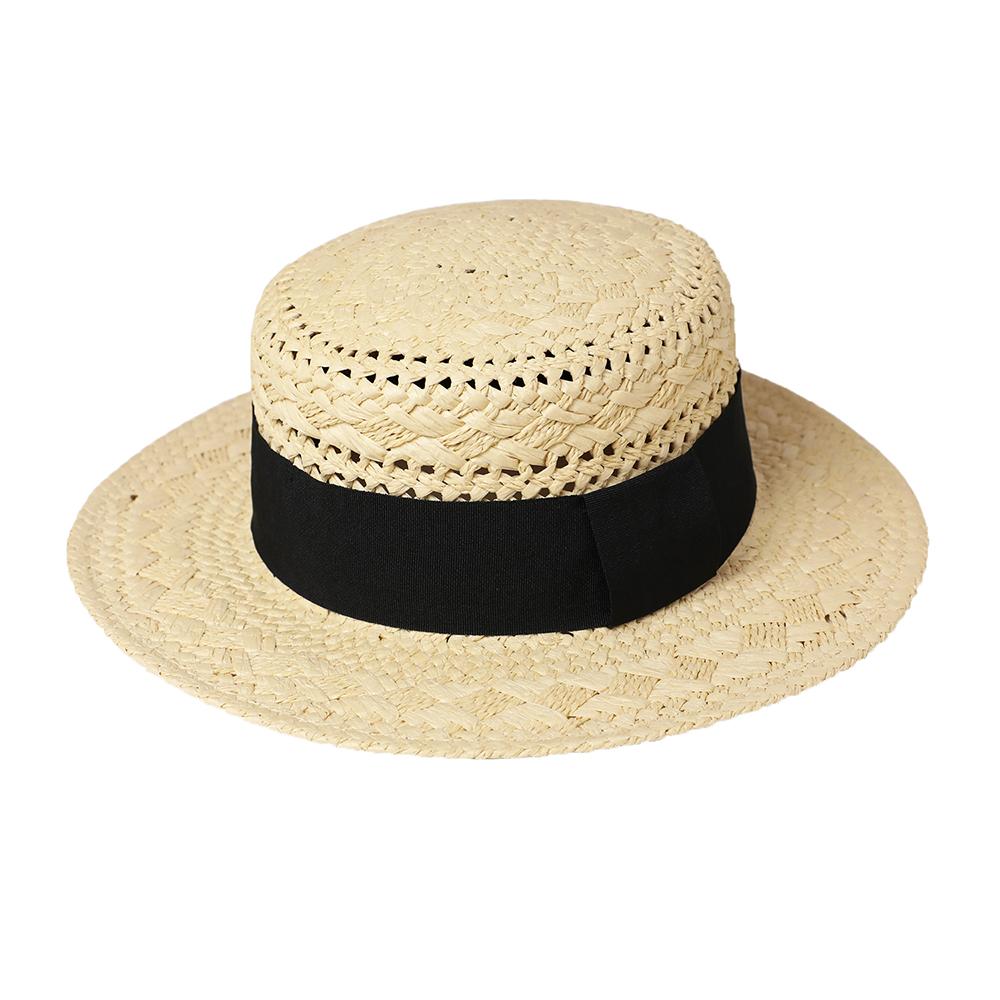 夏のおしゃれアイテムにおすすめのペーパーシートカンカン帽です。しっかりと高さのある被り部分は安定感があり、巻かれている黒リボンで高見えしています。シンプルなつくりで男女問わず被っていただけます。◎内側にあるすべりの裏側には、サイズを調節して頂けるテープが付いていますので ご自分のサイズ感で被って頂けます。