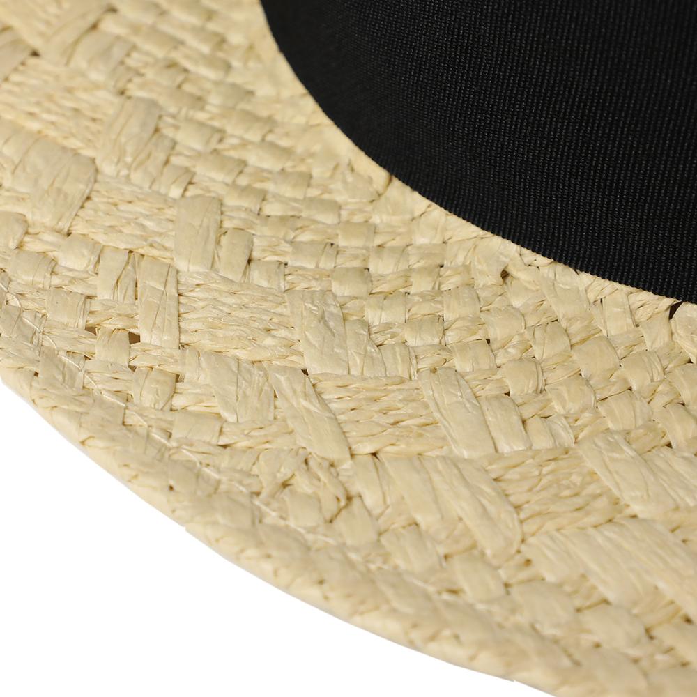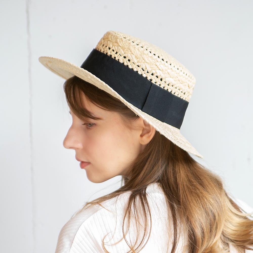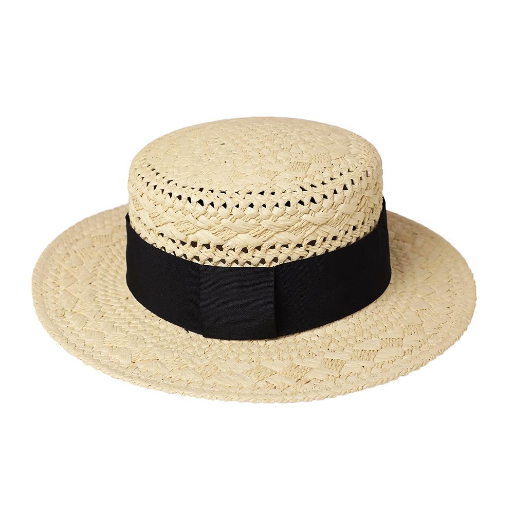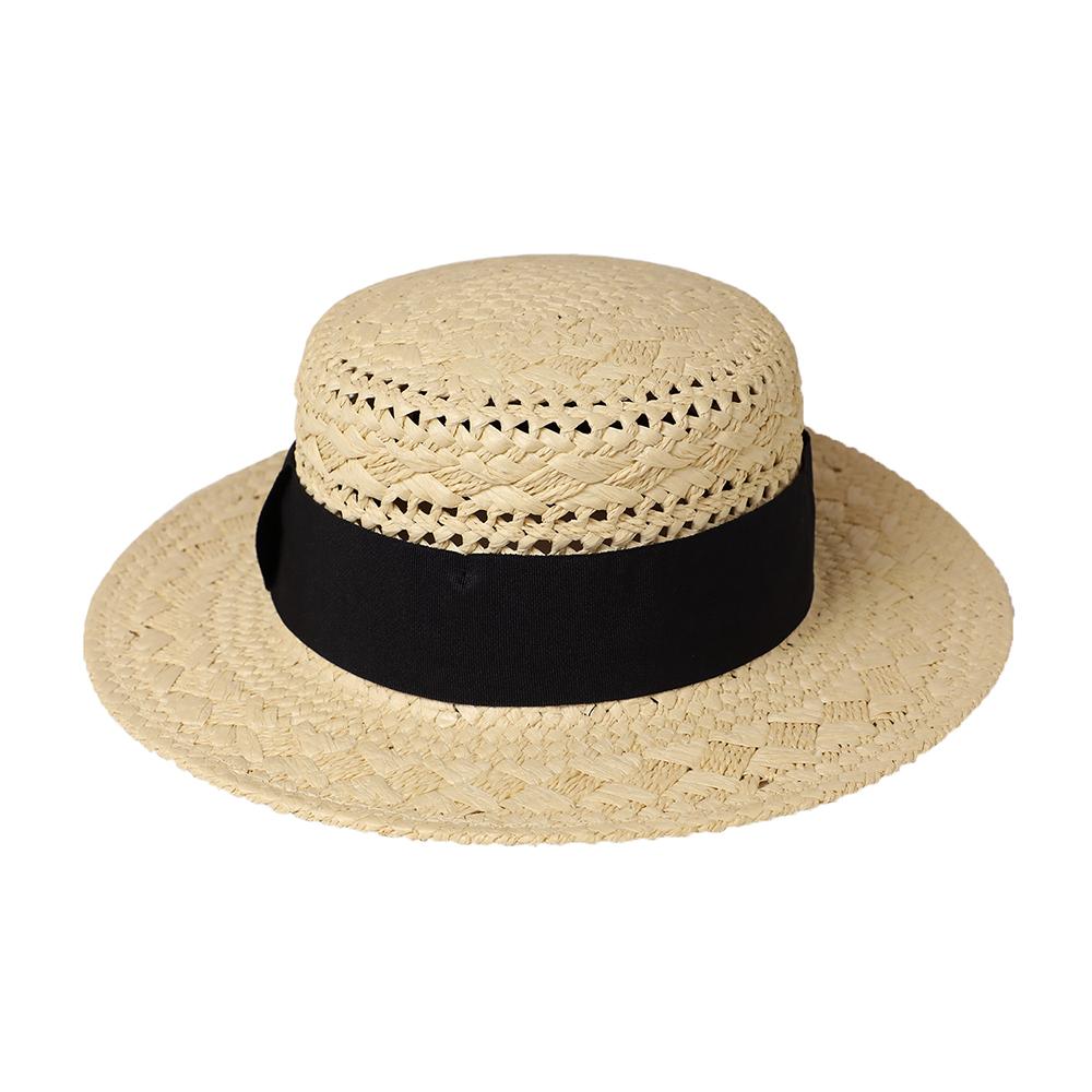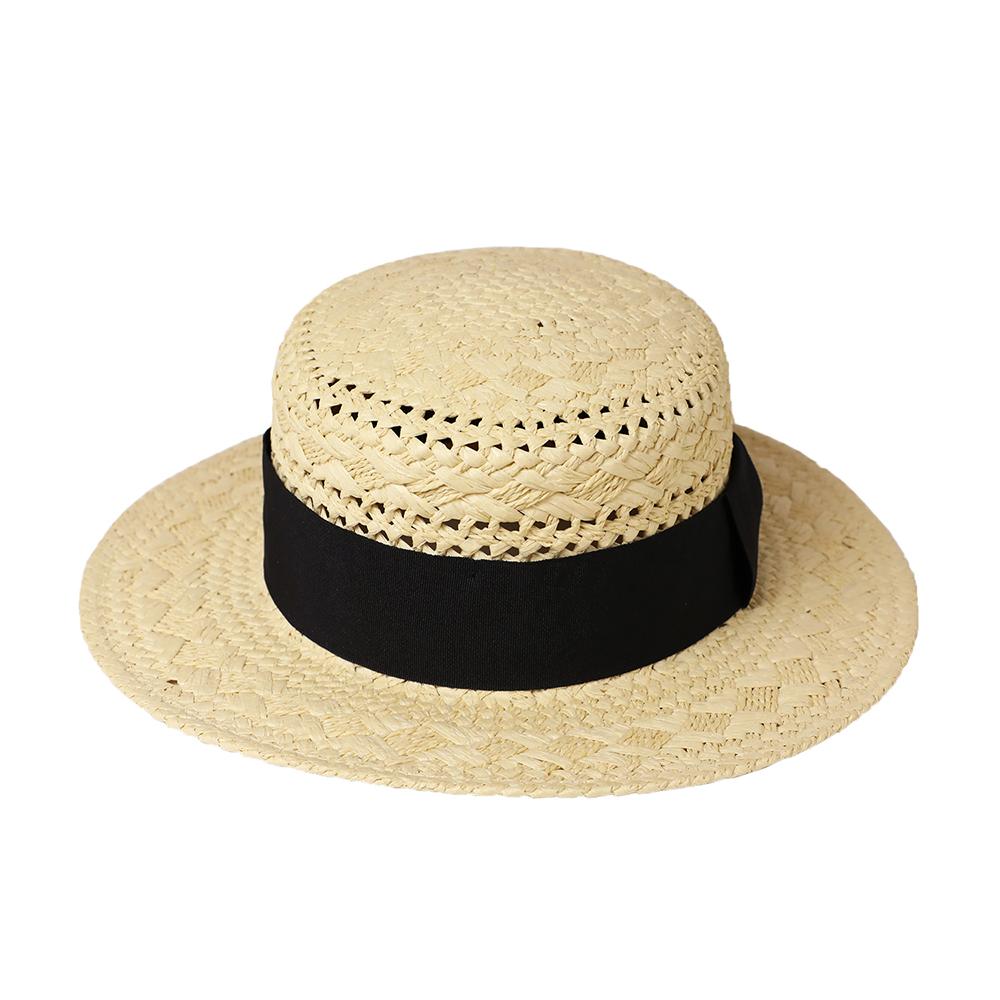 夏のおしゃれアイテムにおすすめのペーパーシートカンカン帽です。しっかりと高さのある被り部分は安定感があり、巻かれている黒リボンで高見えしています。