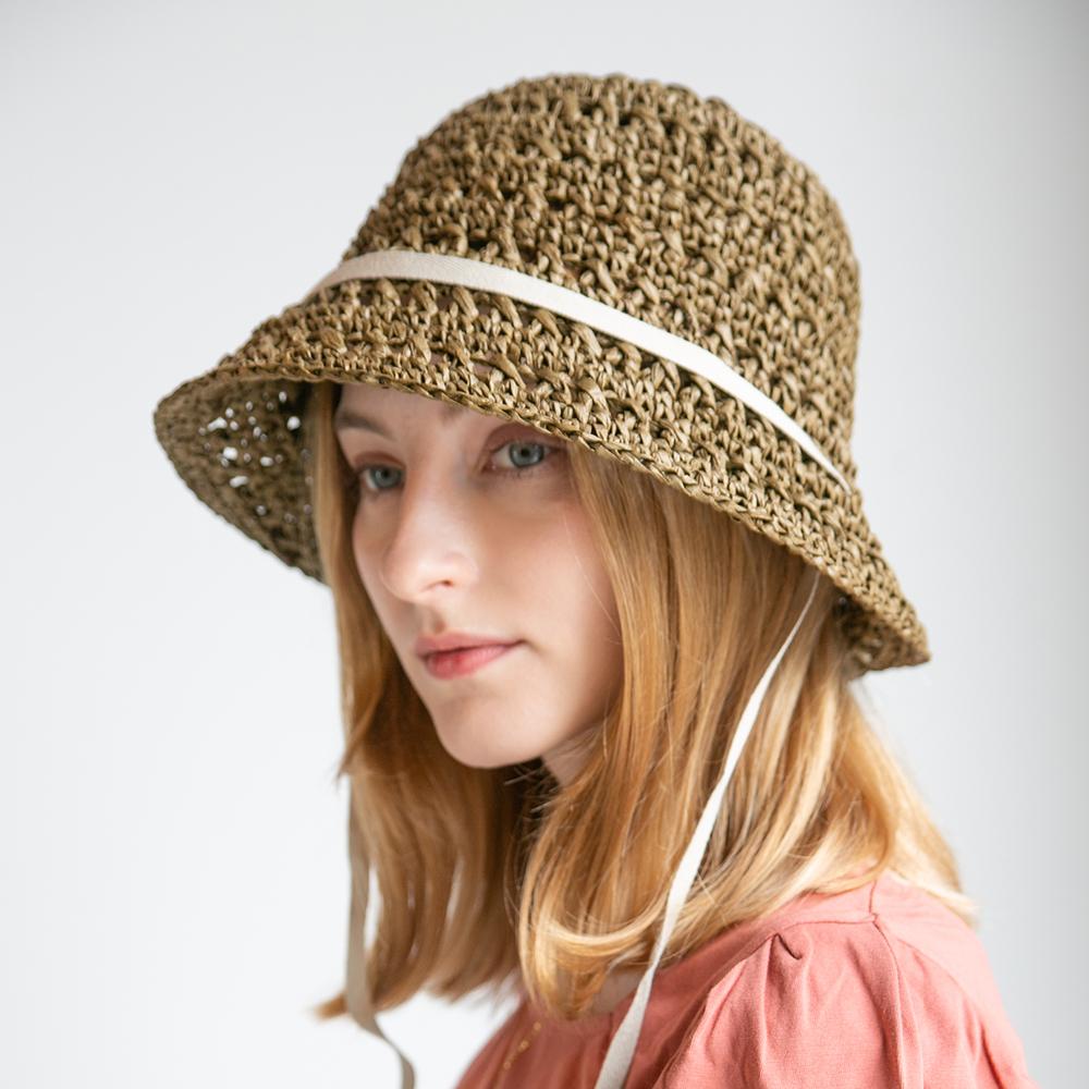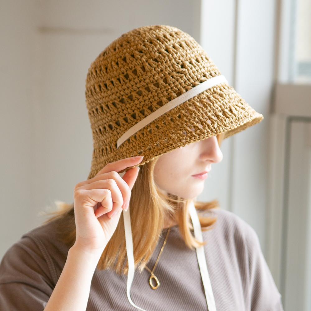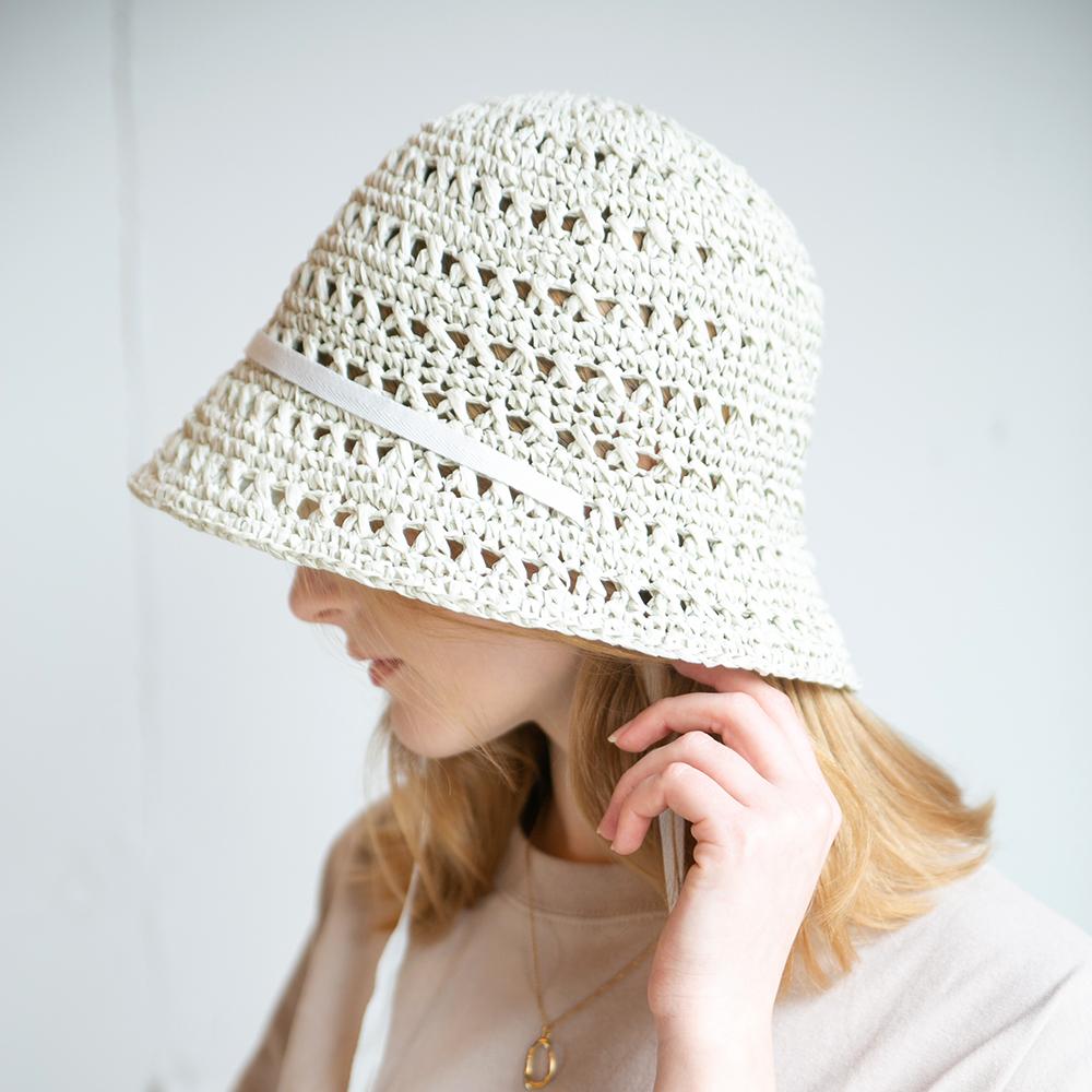 透かし編みが可愛いペーパーハット。紐は取り外しが可能なので、取り外してシンプルに、あご下で結んでガーリーな雰囲気に、そのまま垂らしたりと色々なアレンジを楽しんで頂けます◎カジュアルからガーリーまで幅広いスタイルに合わせていただけます。