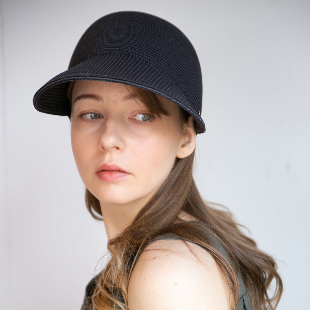ナチュラルな雰囲気が夏にぴったりのジョッキーキャップ。夏らしいブレード編みで重く見えず涼しげな印象に。
