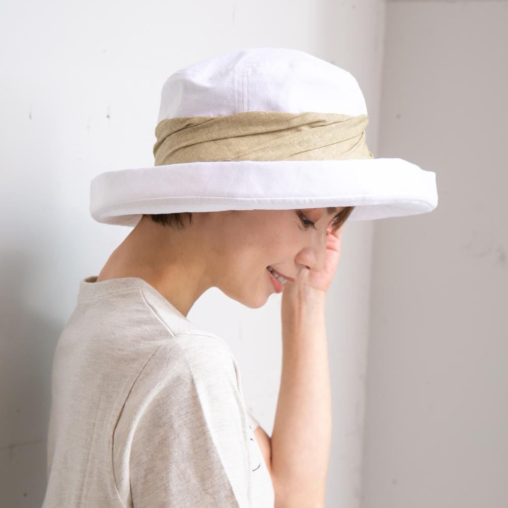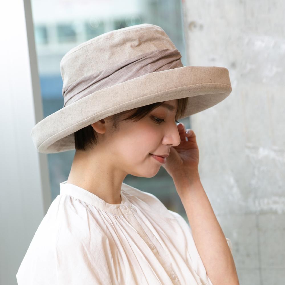 リネン混の爽やかなセーラーハット。普段のお出かけはもちろん、レジャーやアウトドアにもおすすめのシンプルなデザインです。
