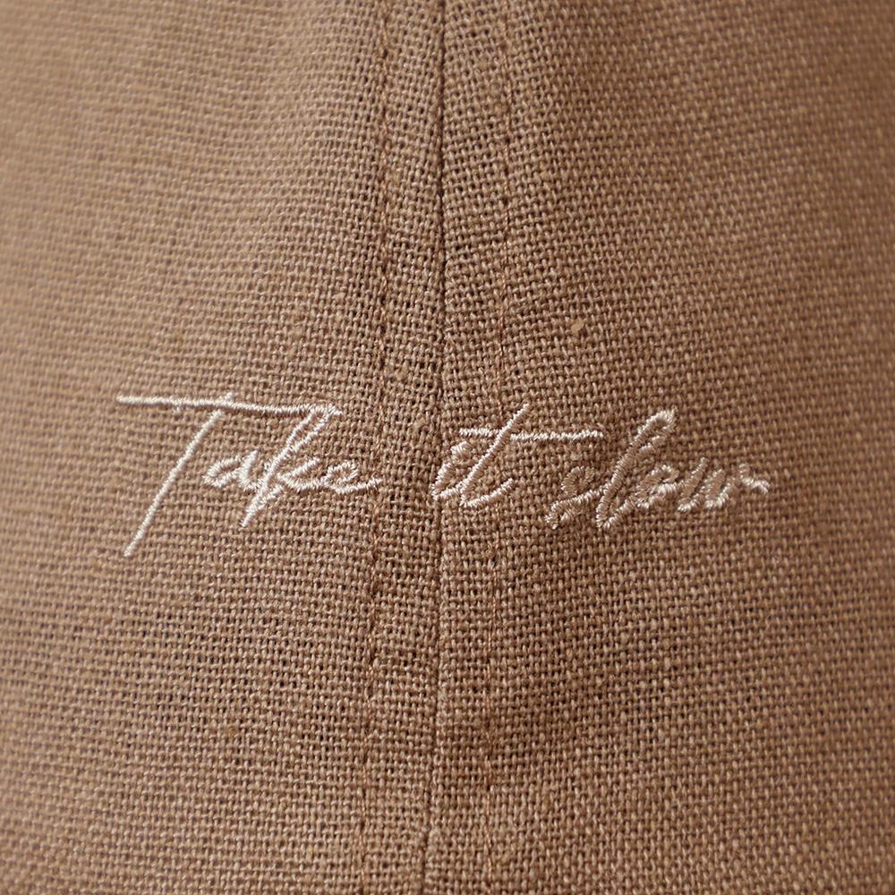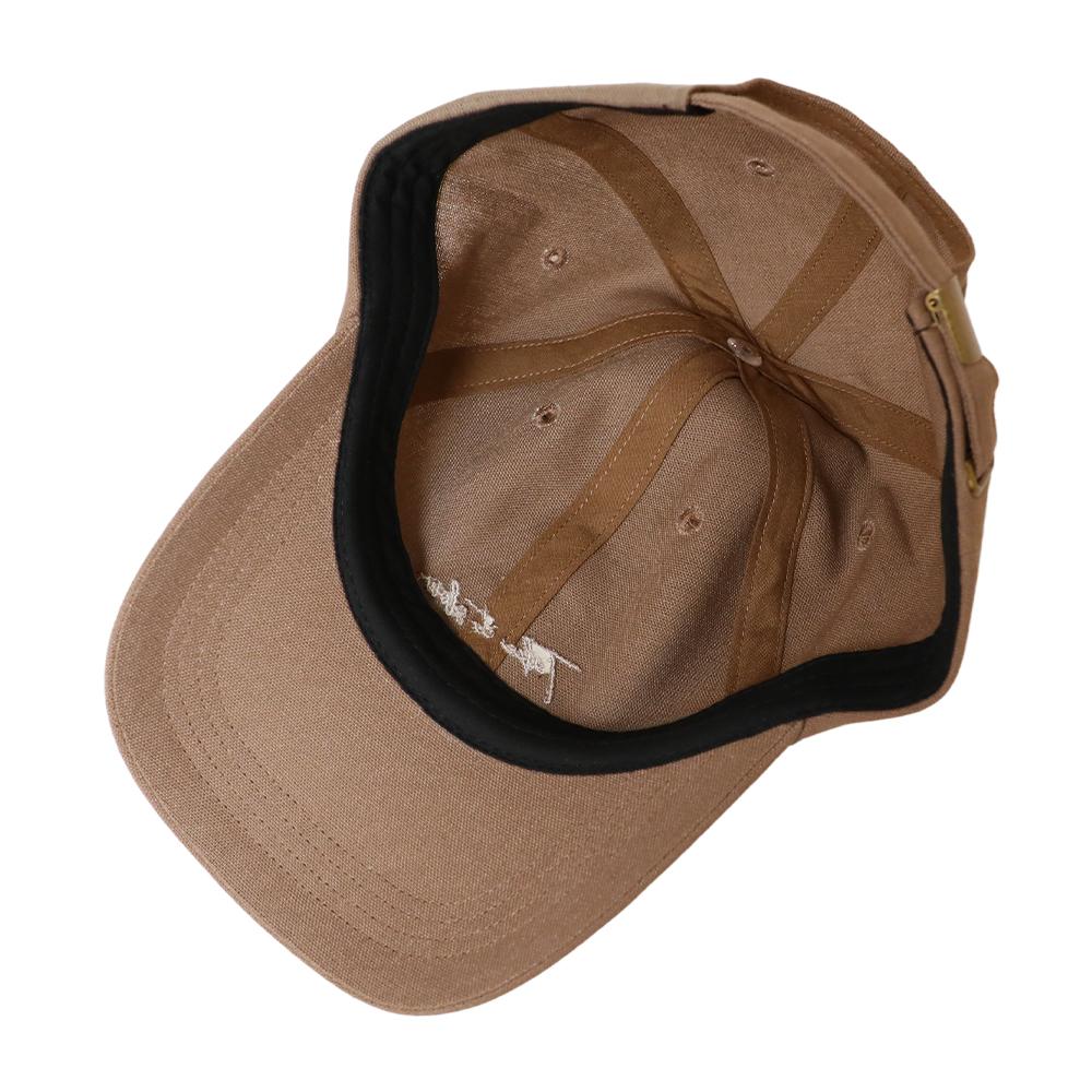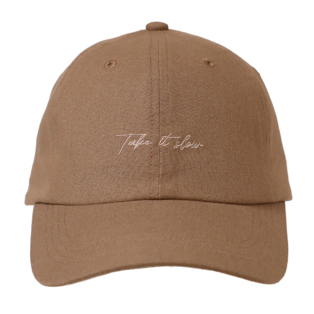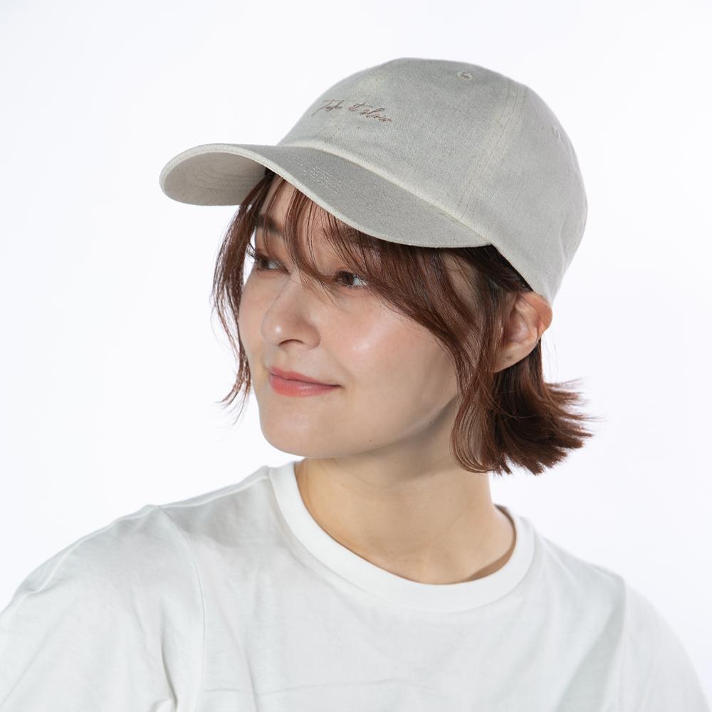 麻混筆記体刺繍キャップ