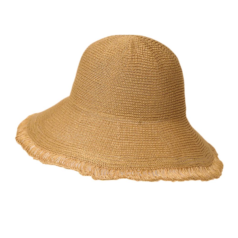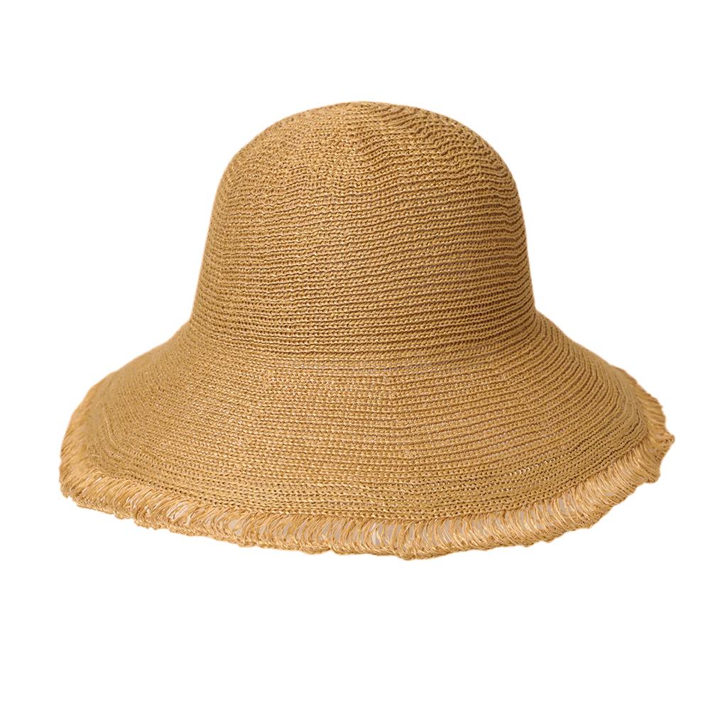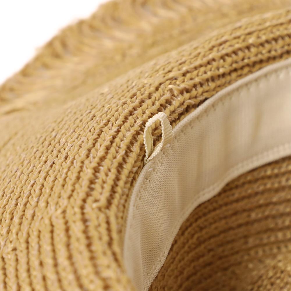 ざっくり編みやつば先のフリンジが可愛いつば広ハットです。夏らしい透かし編みのハットでコーデのワンポイントになること間違いなしです。ざっくり編みでは珍しい手洗い可能で清潔にかぶれるのも嬉しいポイントです。内側にあるすべりの裏側には、サイズを調節して頂けるテープが付いていますのでご自分のサイズ感で被って頂けます。