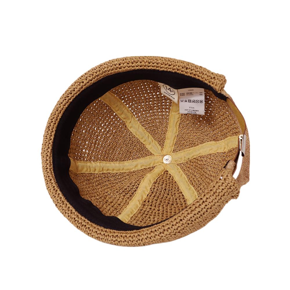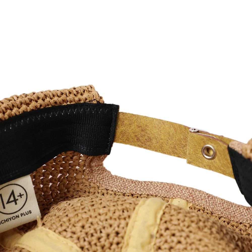 ペーパー素材で編み込んでお洒落にアレンジされたフィッシャーマンキャップ。夏らしい素材感で夏のコーディネートのアクセントになります。後ろのサイズ調節部分は合皮と14+オリジナル金具を使用して、お洒落な印象に。サイズ調節部分を前に被ってもコーデのアクセントになり、とてもお洒落です。◎後ろのベルトでサイズ調節可能なので、ご自身のサイズ感に合わせて頂けます。注意:こちらの商品は手編みの為記載サイズから約1.5cm程度(57.5~59cm)のサイズの個体差がありますのでご了承おねがいいたします