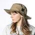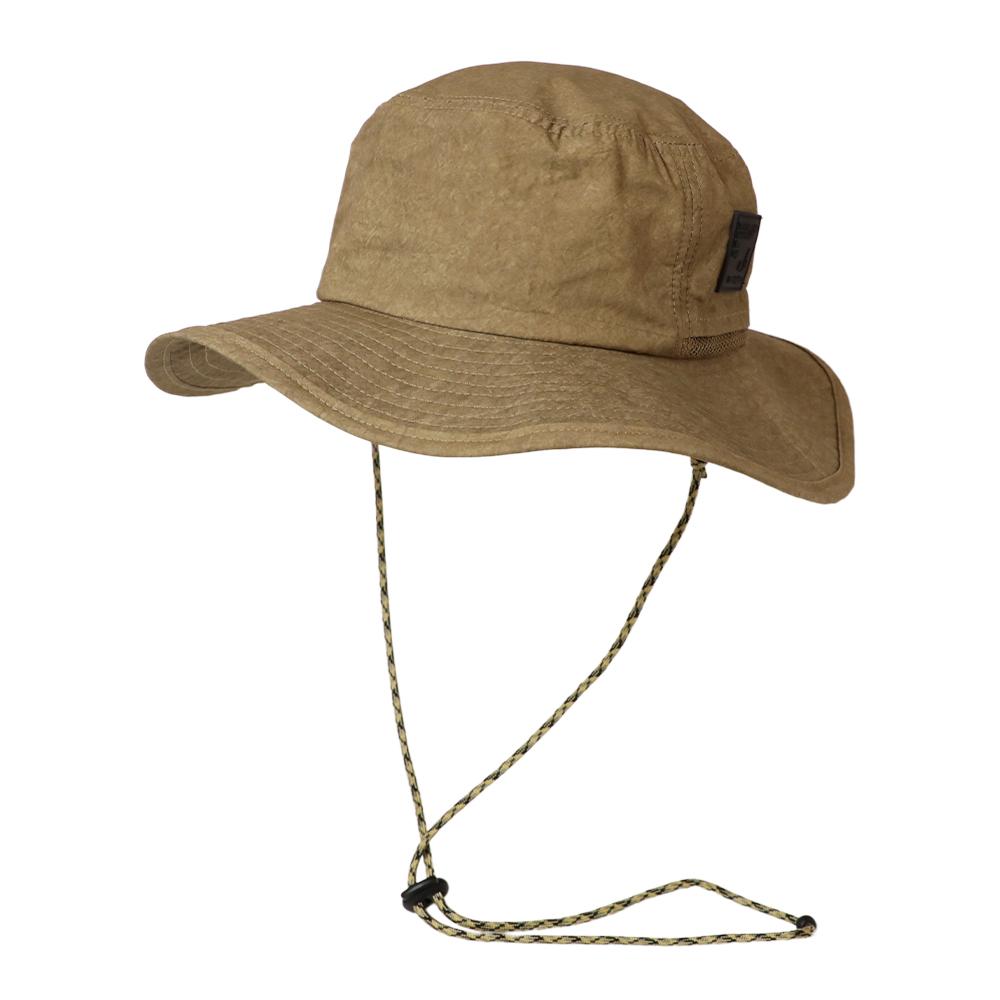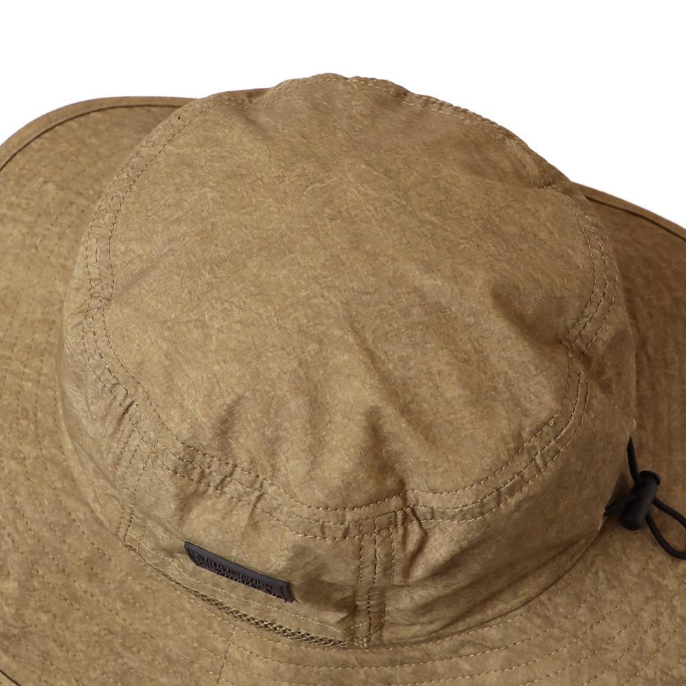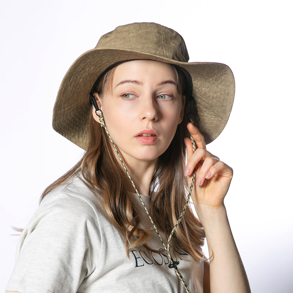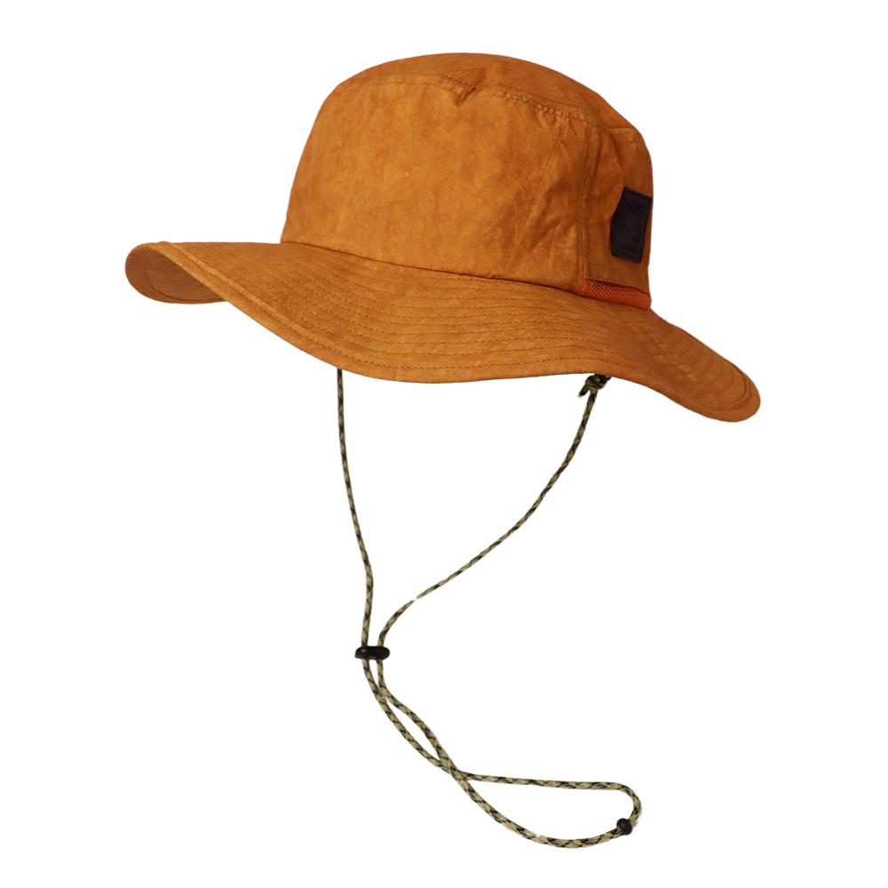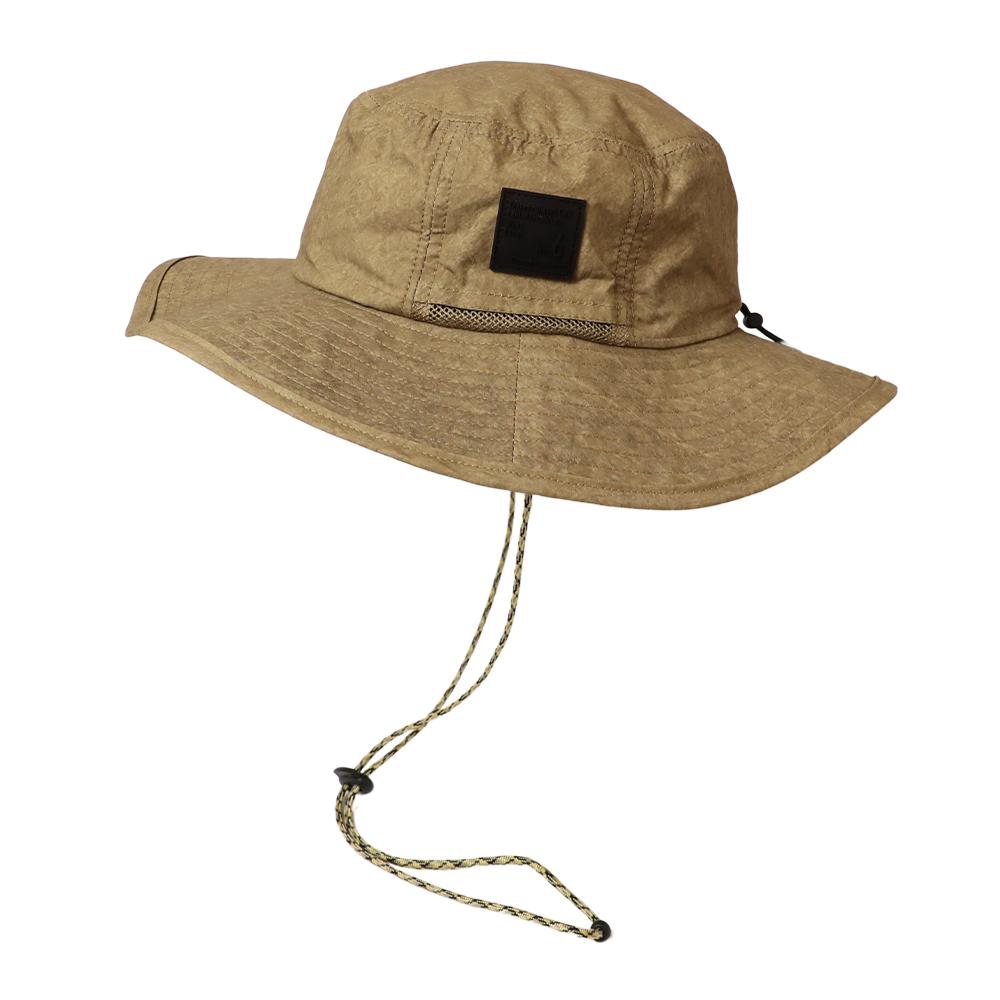 撥水加工を施した機能性に優れたアドベンチャーハットです。裏地のメッシュ素材と通気口で、爽やかな被り心地。あご紐が取り外せるのも嬉しいポイント。柔らかい素材感でコンパクトに折りたたんでの持ち運びにも便利です。後ろのつまみで多少のサイズ調節ができ、さらに手洗いも可能なので、いつでも清潔に保って頂けます。