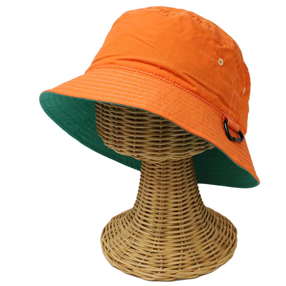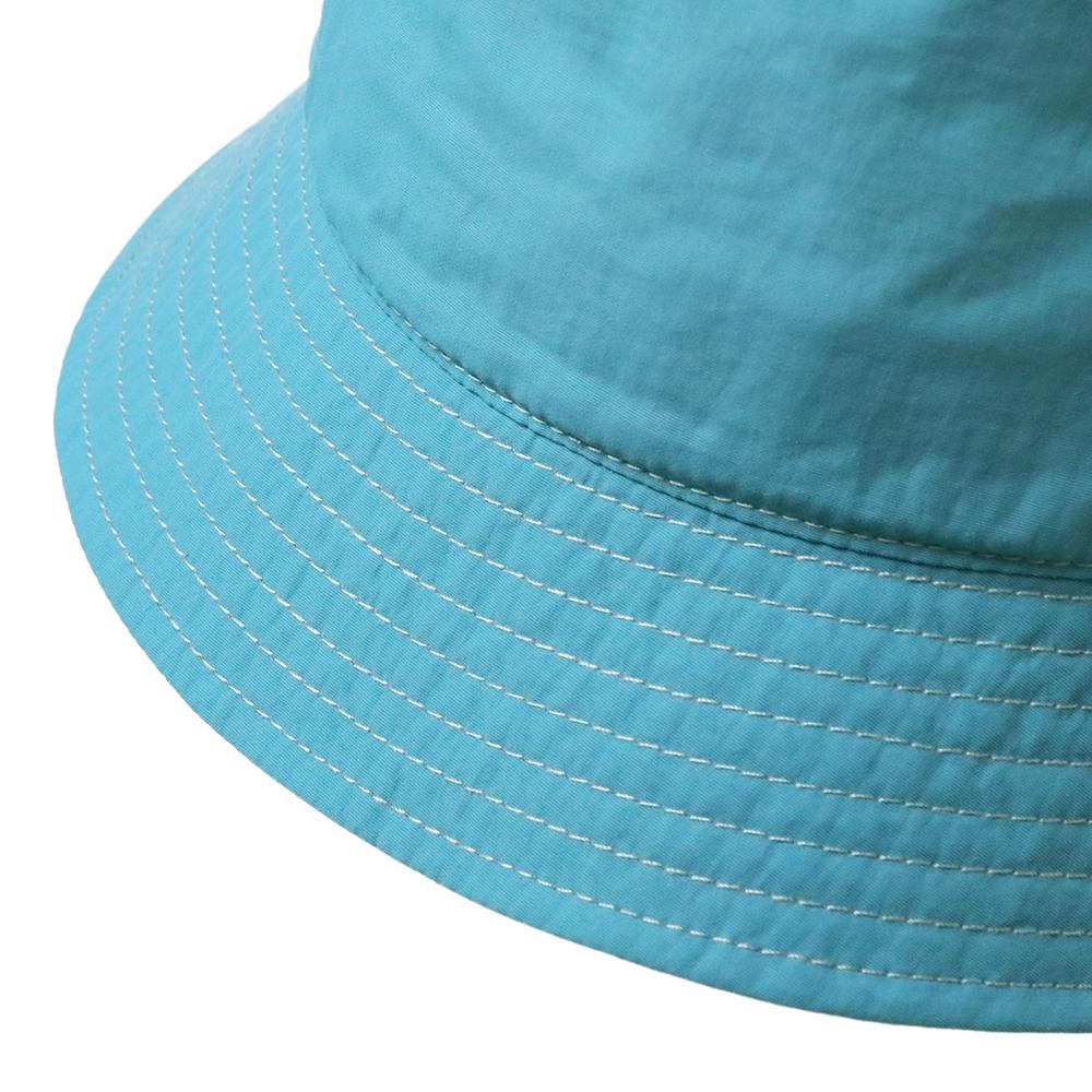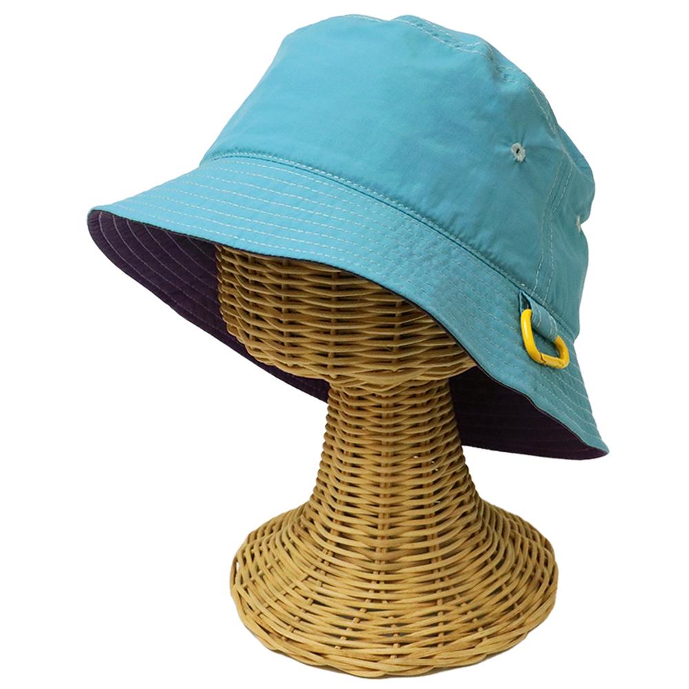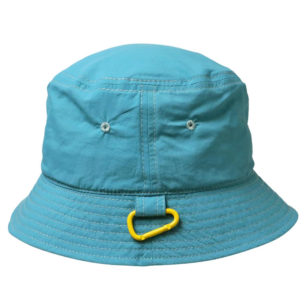 撥水加工を施した、カラビナ付きバケットハット。つば裏部分の色合いとのコントラストが可愛いバイカラーで、着こなしのアクセントに!夏のフェスやアウトドアにもピッタリで、キッズも被れるサイズ展開なので、親子お揃いで被って頂けます。軽量で柔らかい生地を使用しているため、小さく折り畳めて持ち運びにも便利です。内側にあるすべりの裏側には、サイズを調節して頂けるテープが付いていますので ご自分のサイズ感で被って頂けます。