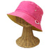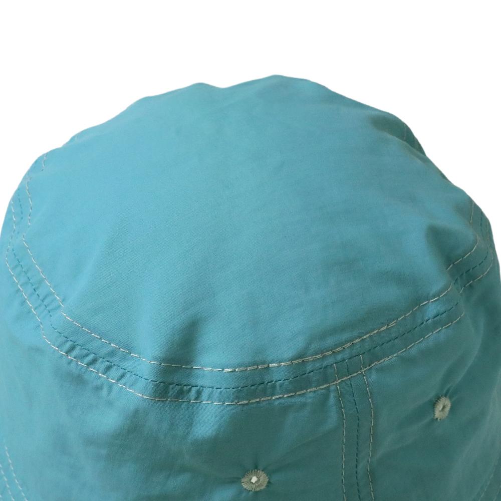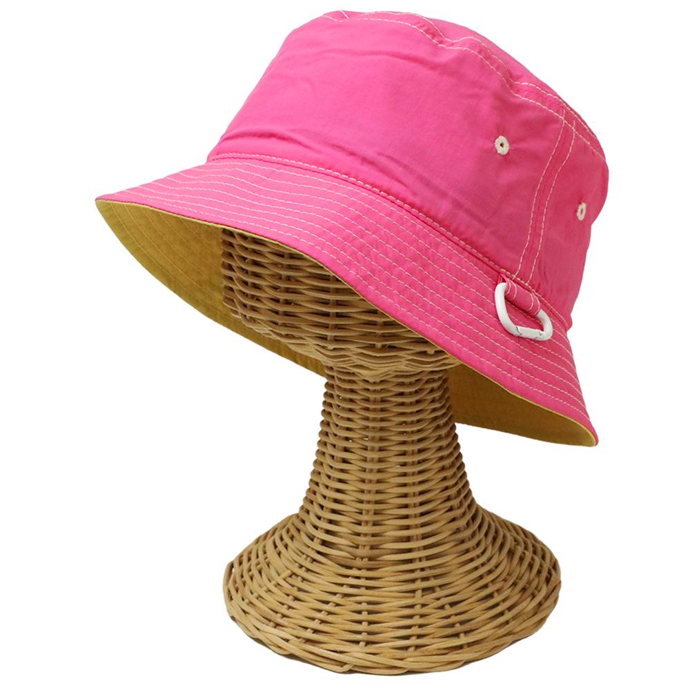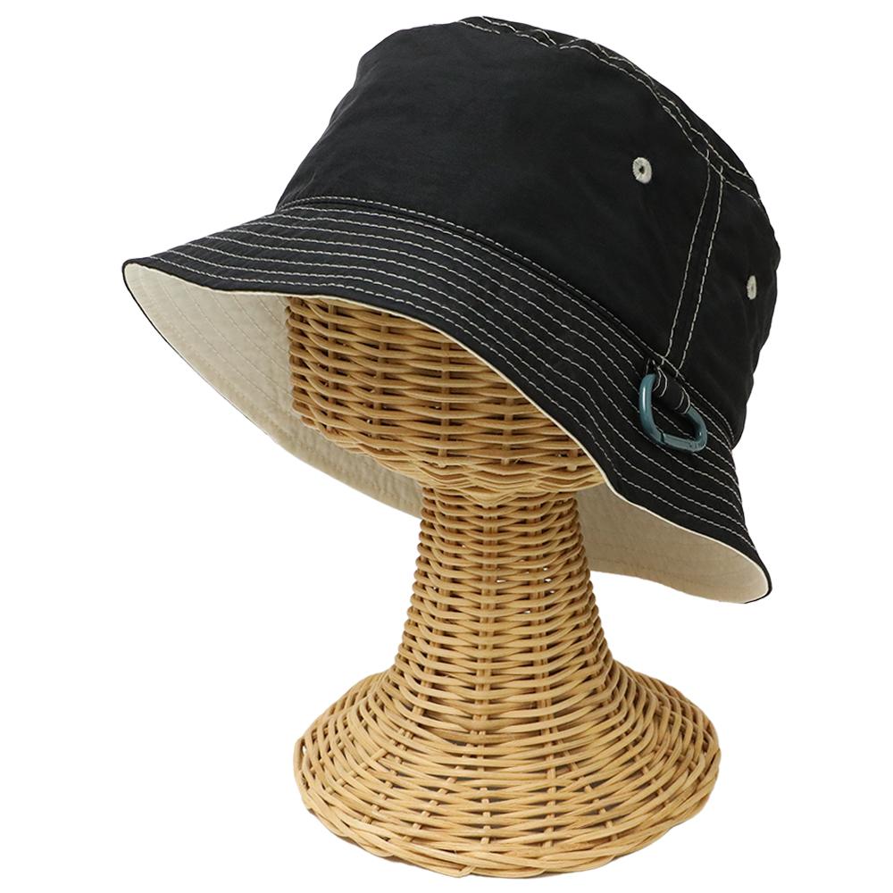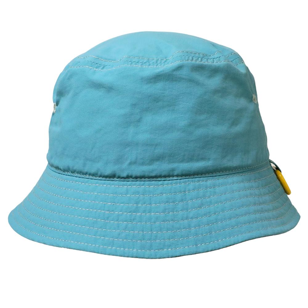 撥水加工を施した、カラビナ付きバケットハット。つば裏部分の色合いとのコントラストが可愛いバイカラーで、着こなしのアクセントに!夏のフェスやアウトドアにもピッタリで、キッズも被れるサイズ展開なので、親子お揃いで被って頂けます。軽量で柔らかい生地を使用しているため、小さく折り畳めて持ち運びにも便利です。内側にあるすべりの裏側には、サイズを調節して頂けるテープが付いていますので ご自分のサイズ感で被って頂けます。