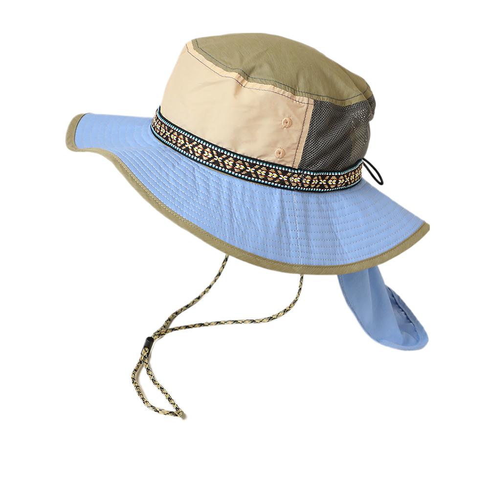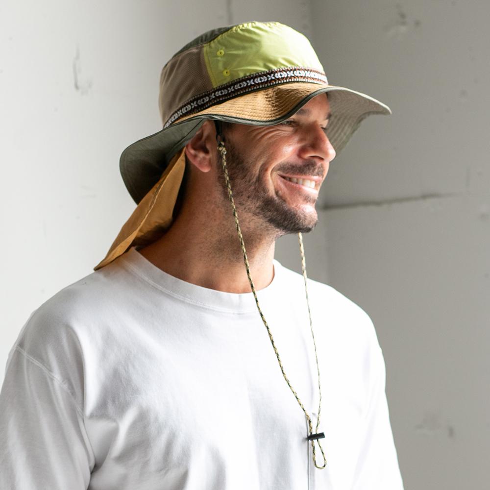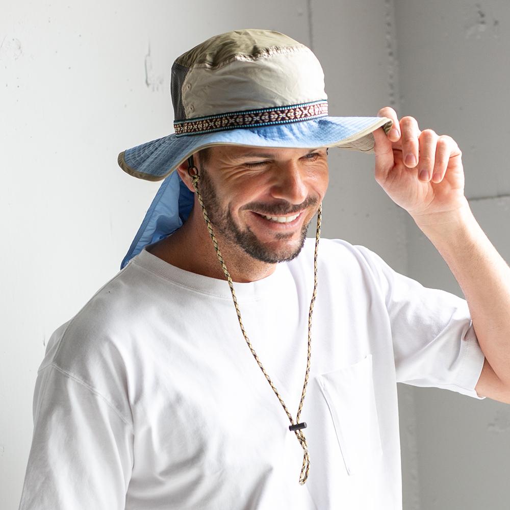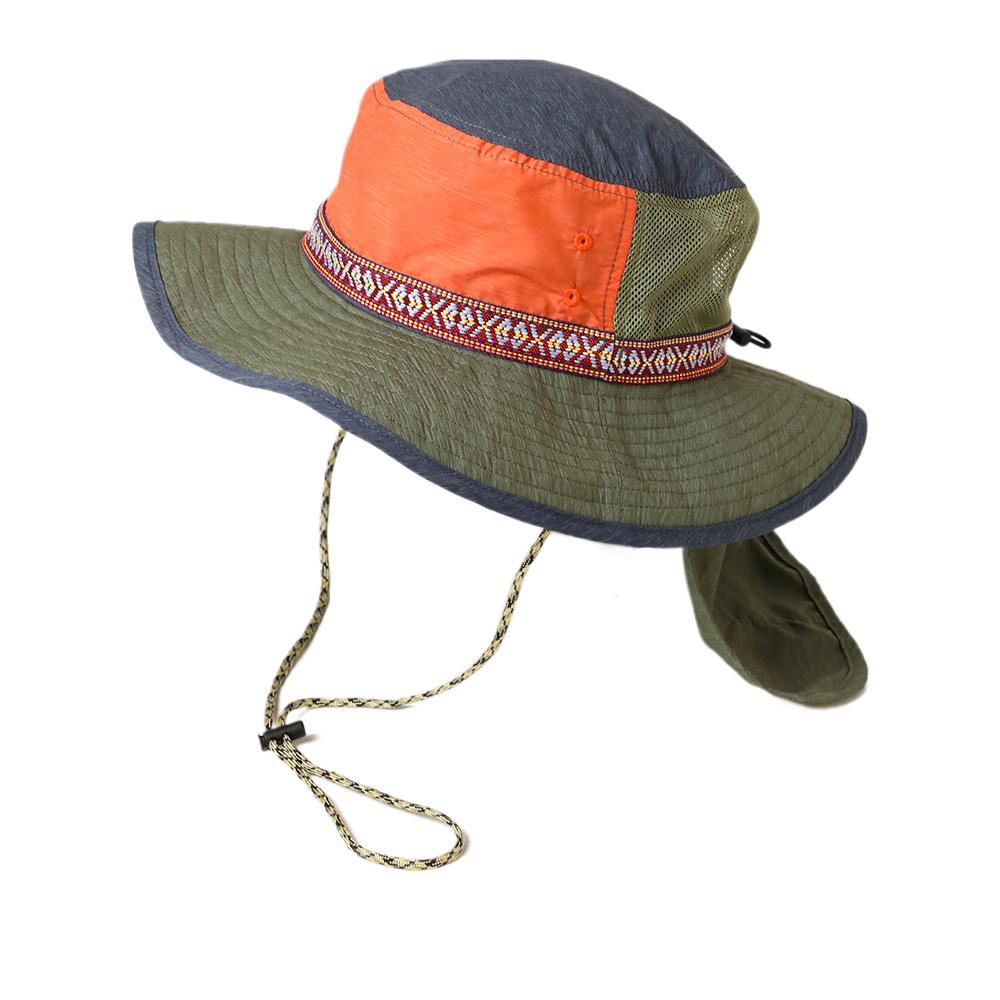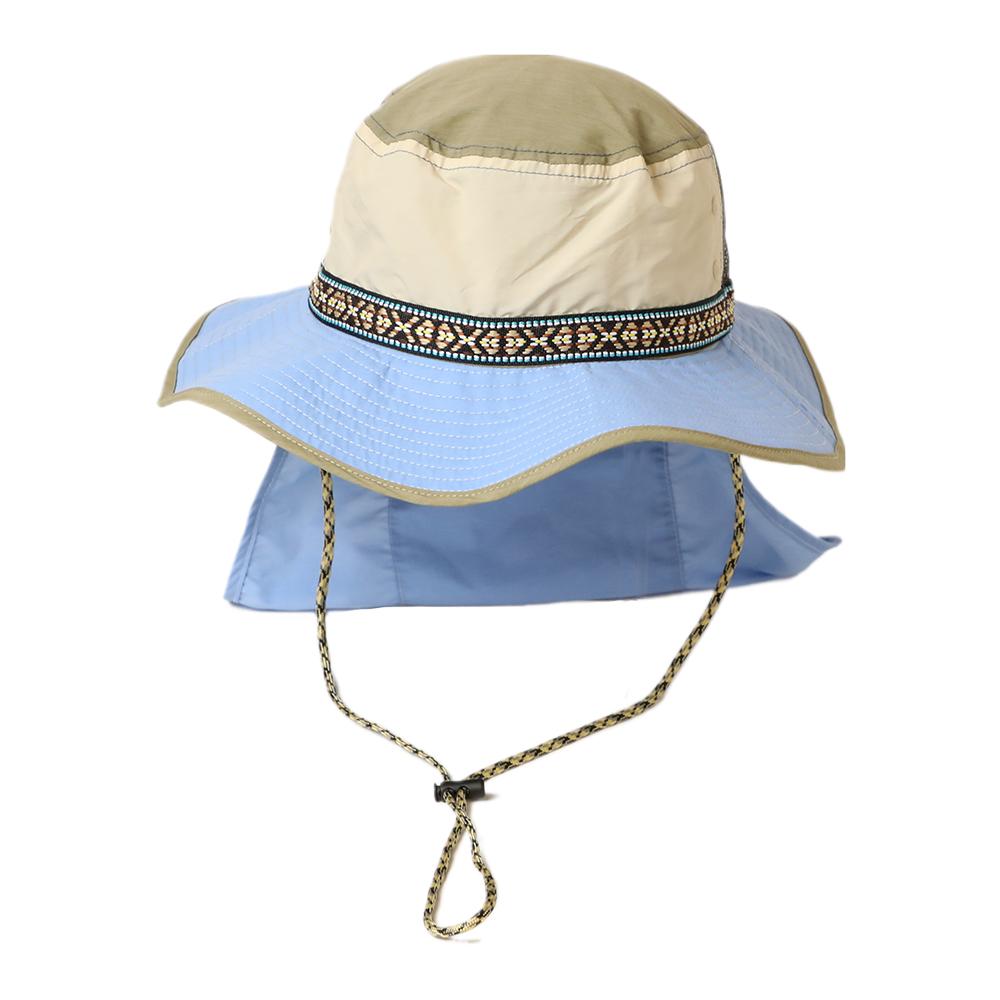 UV加工、撥水加工を施した機能性に優れた親子で被れるサファリハット。チロリアンテープのアクセントがかわいい!これをかぶるだけで一気にアウトドアスタイルに!首やけ防止の収納式マントもついてUV対策もバッチリ!保冷剤ポケットもついています!柔らかい素材感でコンパクトに折りたたんでの持ち運びにも便利です。◎後ろのつまみで多少のサイズ調節が可能です。