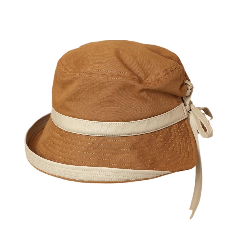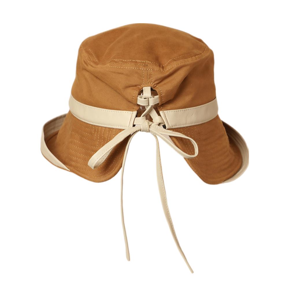 合皮のパイピングとバックリボンがアクセントの秋冬後割れハットです。後ろ部分は広く開いているので、後ろで髪を結んだヘアスタイルでも、アレンジヘアでもストレス無く被ることができるのも嬉しいポイントです!また,紐はそのままおろす・後ろでくくるなど様々なスタイルをお楽しみいただけます。サイズの調節は、紐を後ろでくくることで、ご自分のサイズ感で被って頂けます。