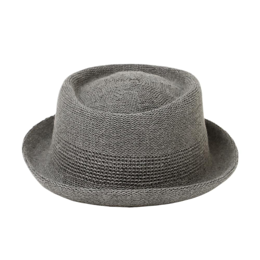 コットンサーモでできたポークパイハットは保温性と通気性を兼ね備えています。シンプルながらつばとクラウン部分の切り返しの編みを変えたデザインでさり気ないおしゃれを楽しめます。◎内側にあるすべりの裏側には、サイズを調節して頂けるテープが付いていますので ご自分のサイズ感で被って頂けます。