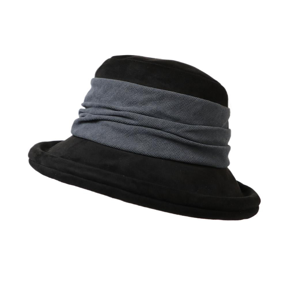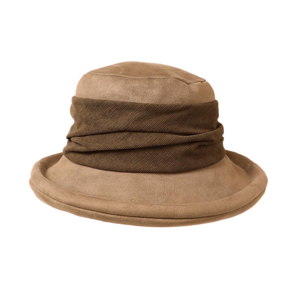 機能沢山の秋冬スエードライクギャザーハットです。裏地部分に静電気防止機能素材を使用しており、すべりは吸水速乾・抗菌防臭機能が付いています。キレイめなスエードライクで出来ているハットですが同色コーデュロイのギャザーが程よくアクセントになってます。◎内側にあるすべりの裏側には、サイズを調節して頂けるテープが付いていますので ご自分のサイズ感で被って頂けます。