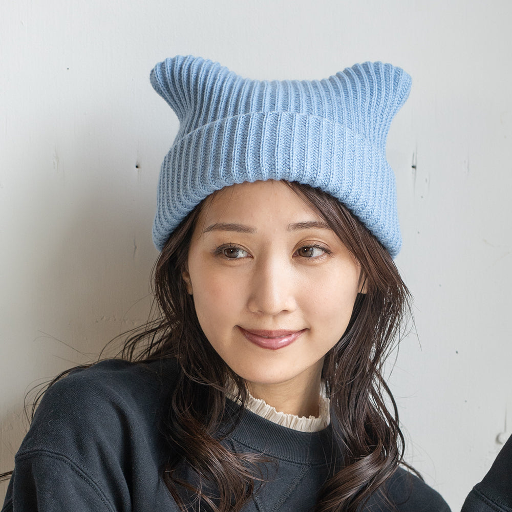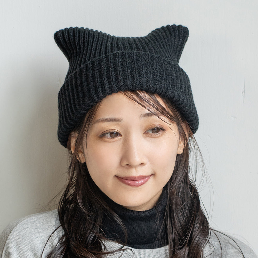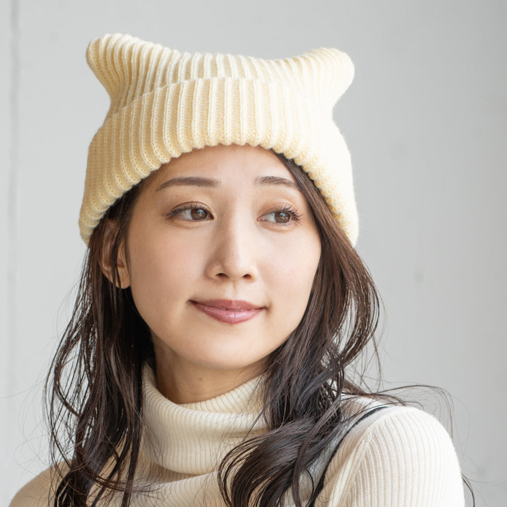 かぶると猫耳になるニット帽です。浅めの被り心地でぴょこっと出た耳がとってもかわいです。少し厚みのある生地は温かみがあり秋冬のコーデのアクセントになります。