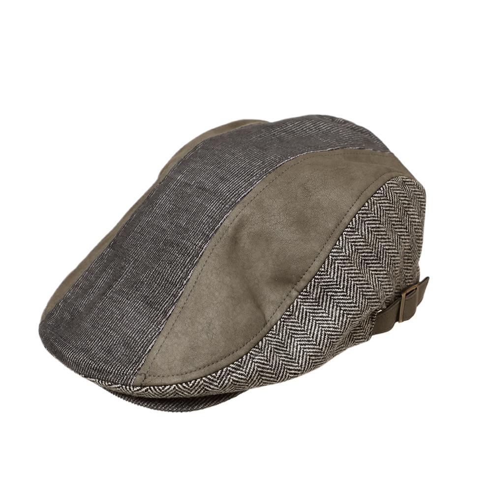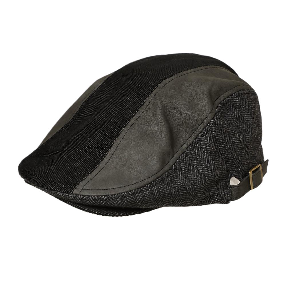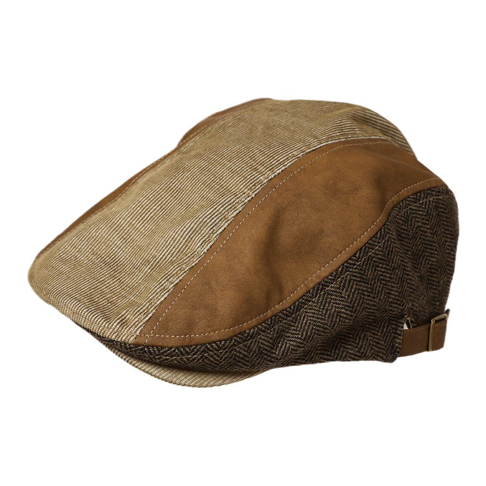デニム風コーデュロイとフェイクレザーとヘリンボーン柄生地をパッチワークで組み合わせたデザインが目を惹くハンチングです。それぞれがアクセントなっており都会的な印象をあたえてくれます。◎両サイドのベルトでサイズ調節可能なので、ご自身のサイズ感に合わせて頂けます。