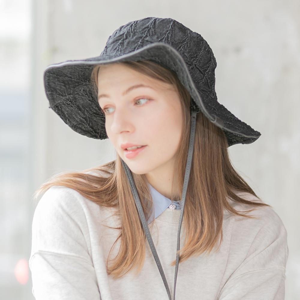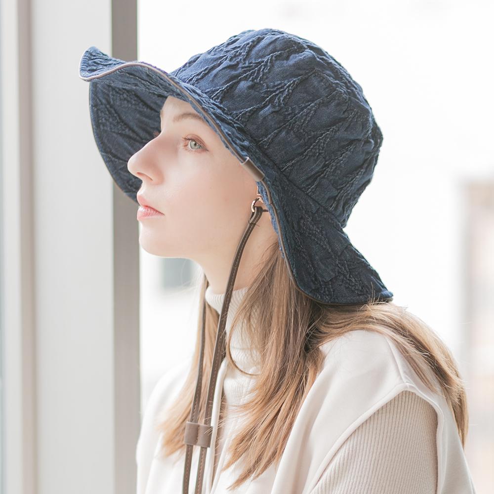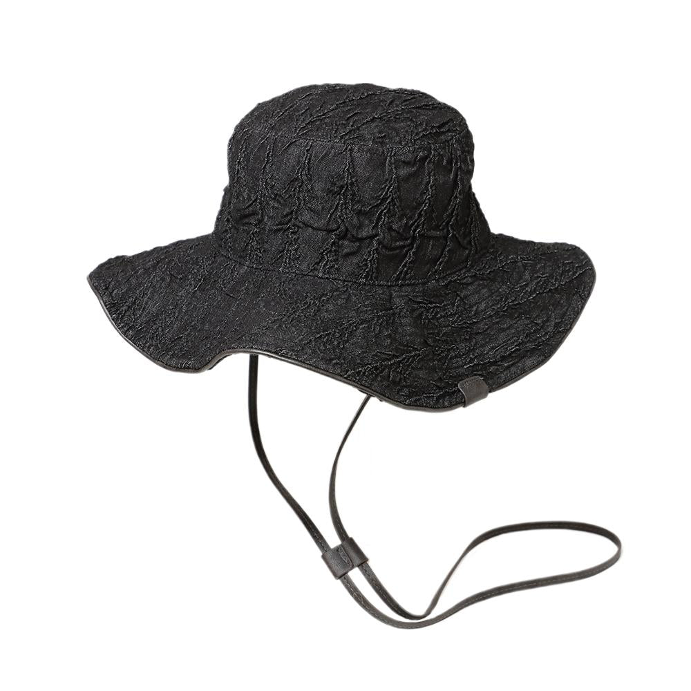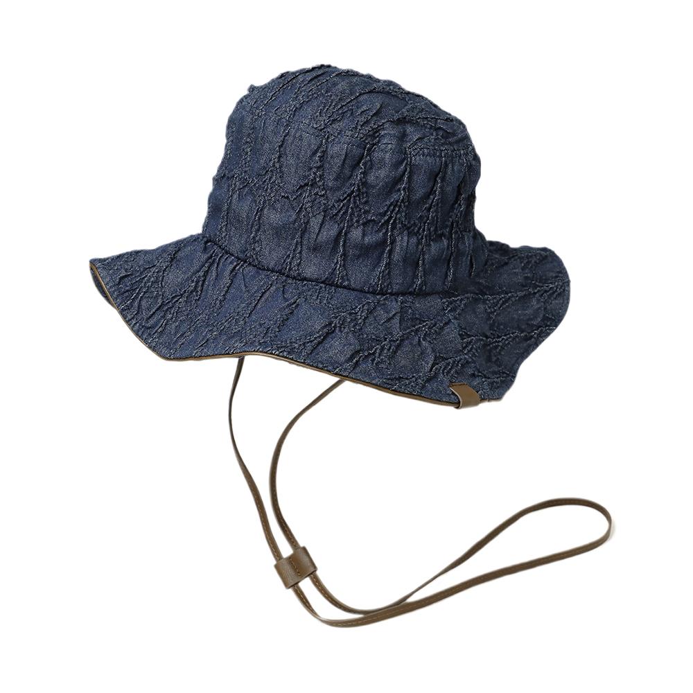 つば広デニムシャーリングハットです。シャーリングされたデニム生地と動きのあるつばでこなれた雰囲気がでます。あご紐も高見えする合皮で出来ており全体的にデザイン性の高いハットです。◎内側にあるすべりの裏側には、サイズを調節して頂けるテープが付いていますので ご自分のサイズ感で被って頂けます。