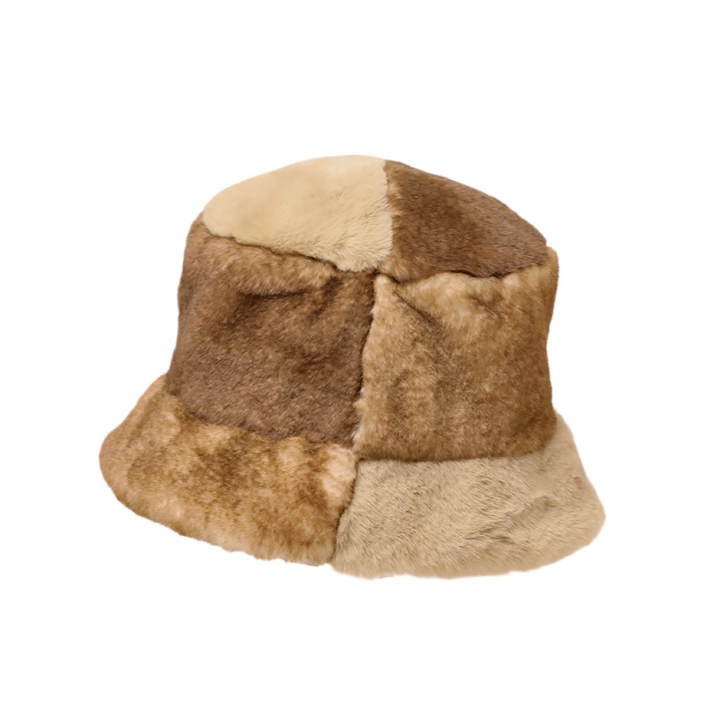 さらふわ触感のパッチワークエコファーバケットハットです。異なる柄のエコファーを組み合わせており、シンプルな中にも動きのあるデザインになっています。◎手洗いも可能なので、いつでも清潔に保って頂けます。◎内側にあるすべりの裏側には、サイズを調節して頂けるテープが付いていますので ご自分のサイズ感で被って頂けます。