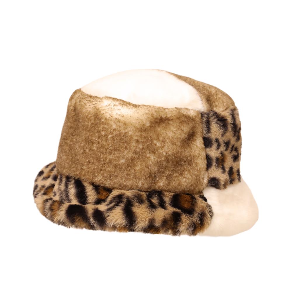 コーデの主役になるふわふわファーの柄パッチワークバケットハットです。エコファーを使用しており軽くて柔らかく、頭に馴染む被り心地です。アクセントになるレオパード柄がシンプルになりがちな秋冬コーデを華やかにしてくれます。手洗いできるのも嬉しいポイントです。◎内側にあるすべりの裏側には、サイズを調節して頂けるテープが付いていますので ご自分のサイズ感で被って頂けます。