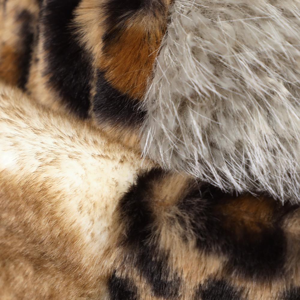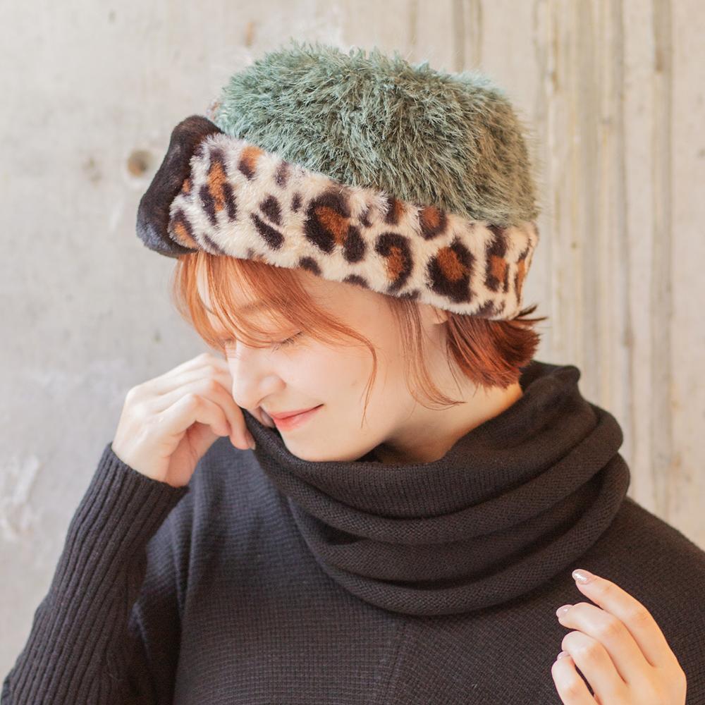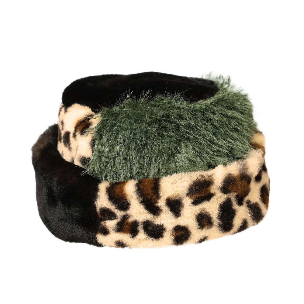コーデの主役になるボリュームたっぷりふわふわファーの柄パッチワークトーク帽です。トーク帽ですが芯などが入っていないので柔らかくて頭に馴染む被り心地です。アクセントになるレオパード柄がシンプルになりがちな秋冬コーデを華やかにしてくれます。