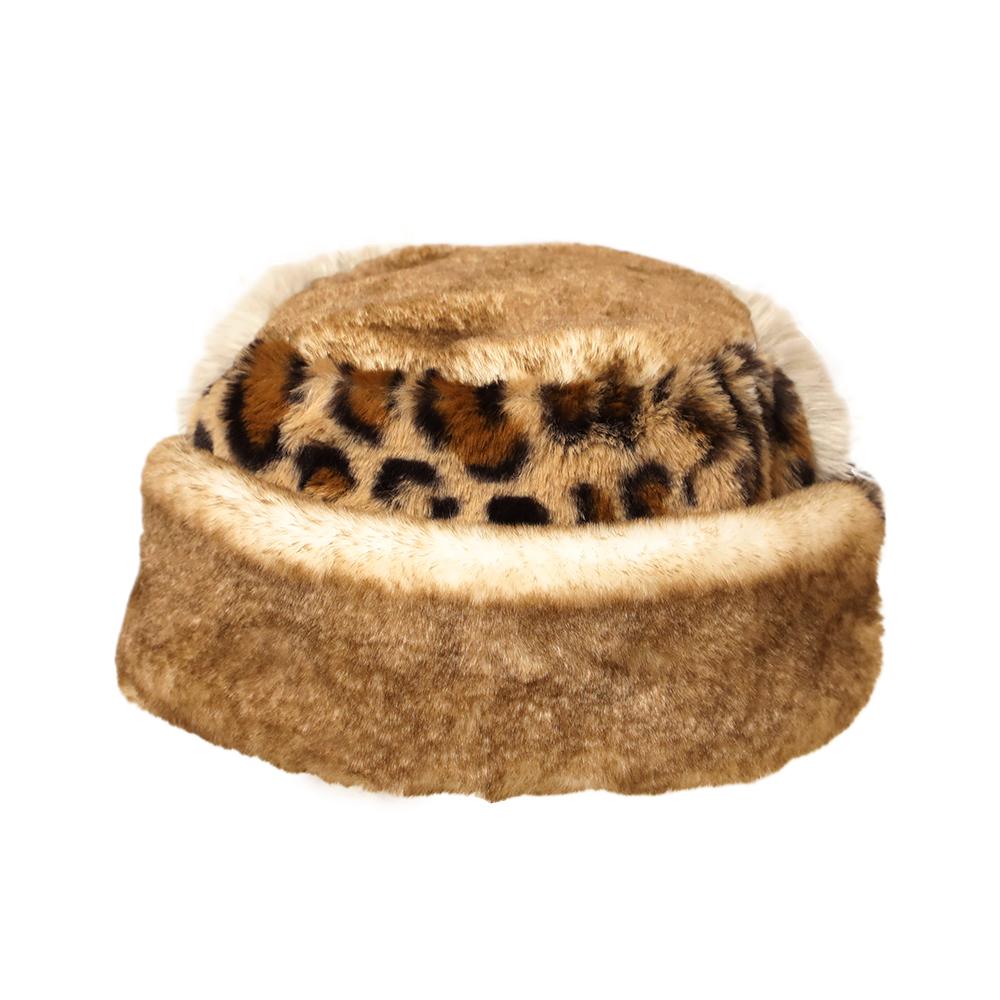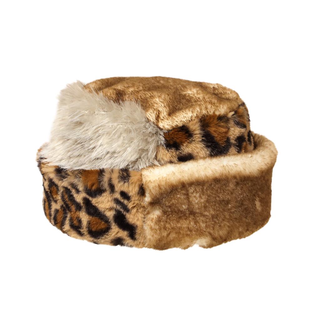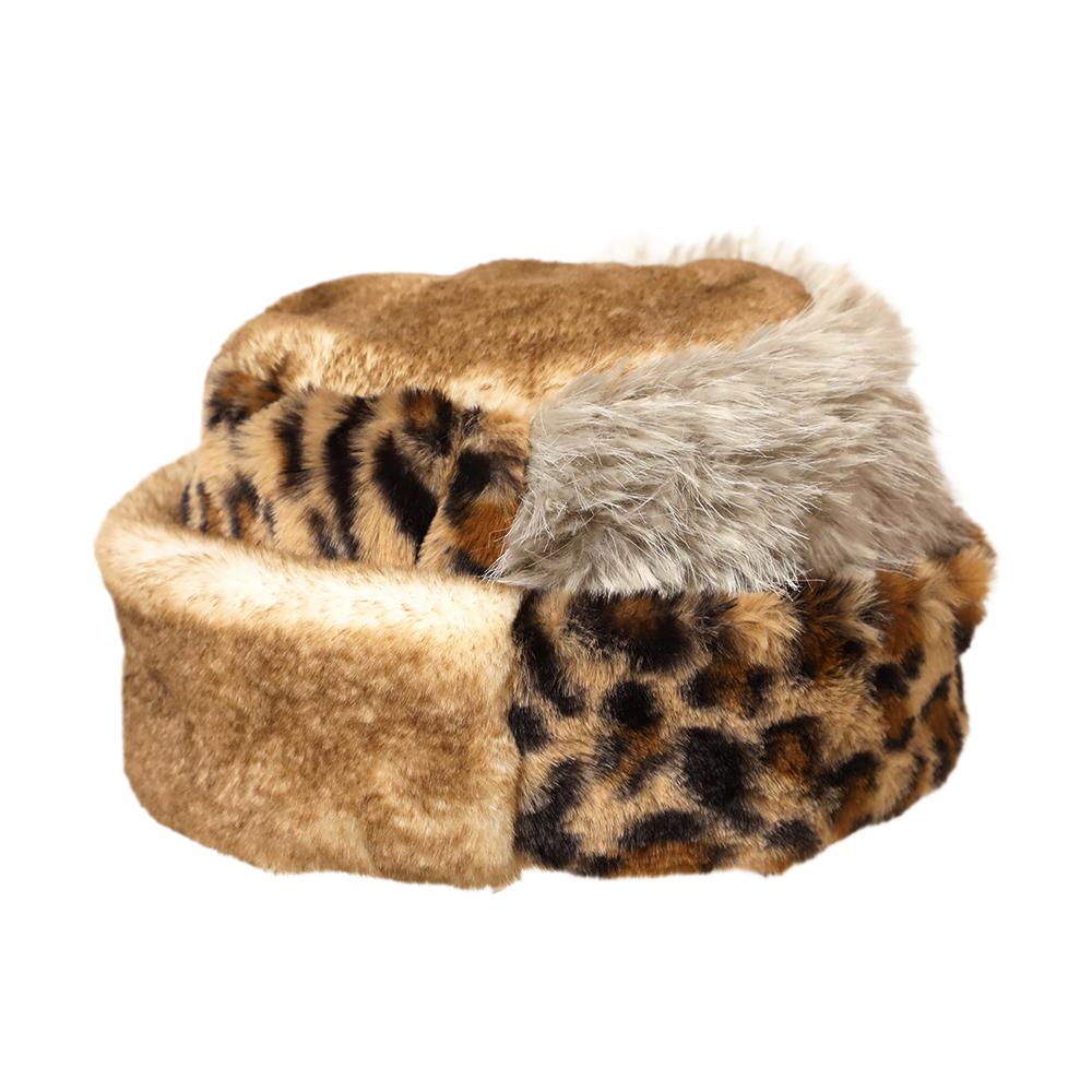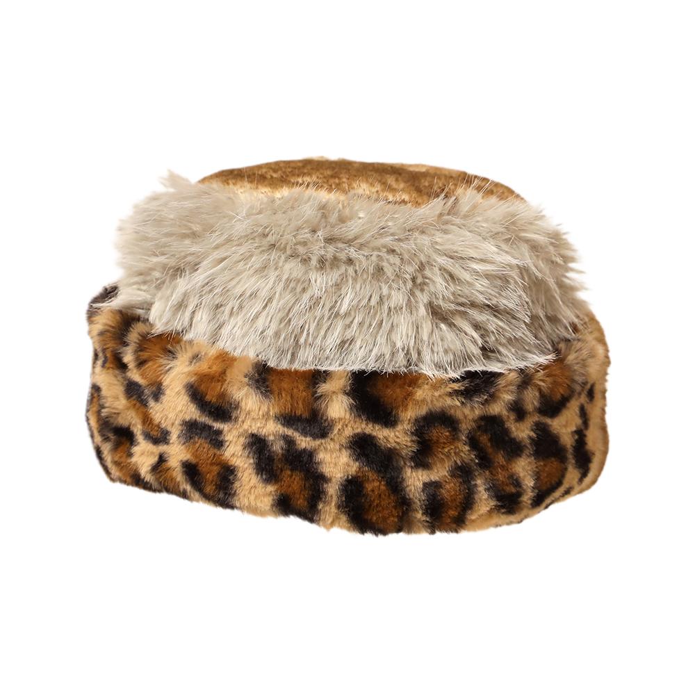 コーデの主役になるボリュームたっぷりふわふわファーの柄パッチワークトーク帽です。トーク帽ですが芯などが入っていないので柔らかくて頭に馴染む被り心地です。アクセントになるレオパード柄がシンプルになりがちな秋冬コーデを華やかにしてくれます。