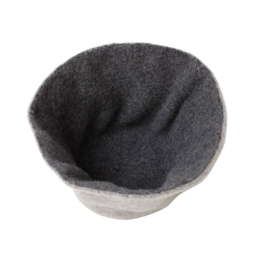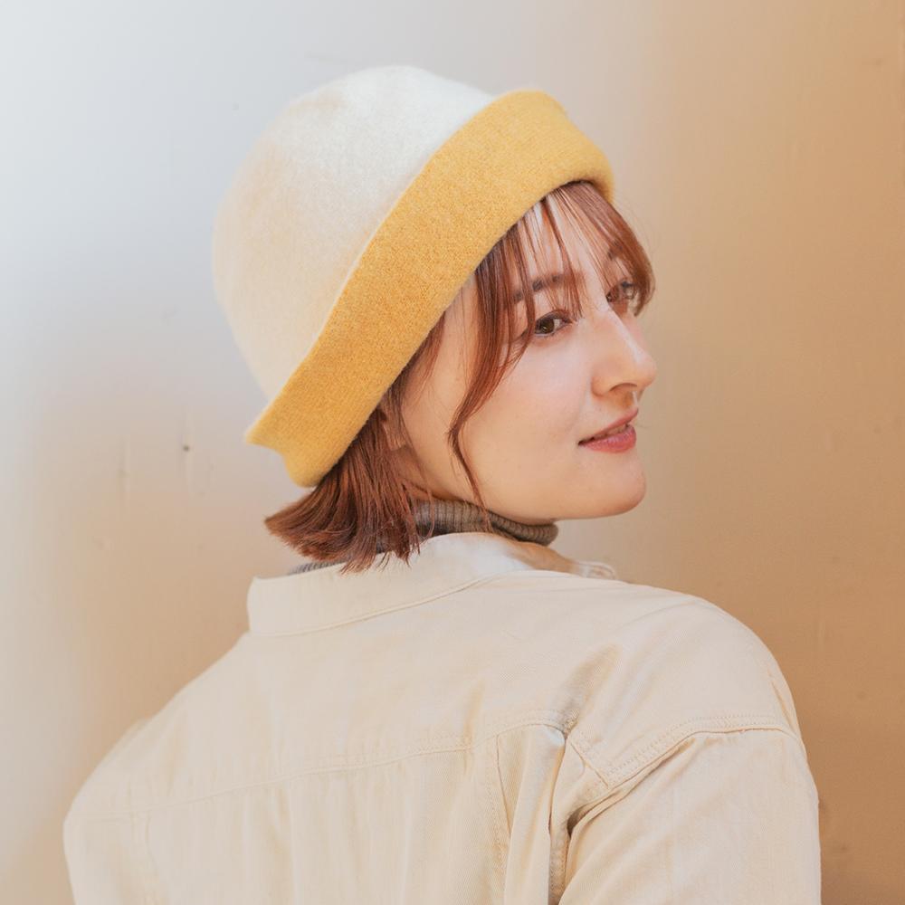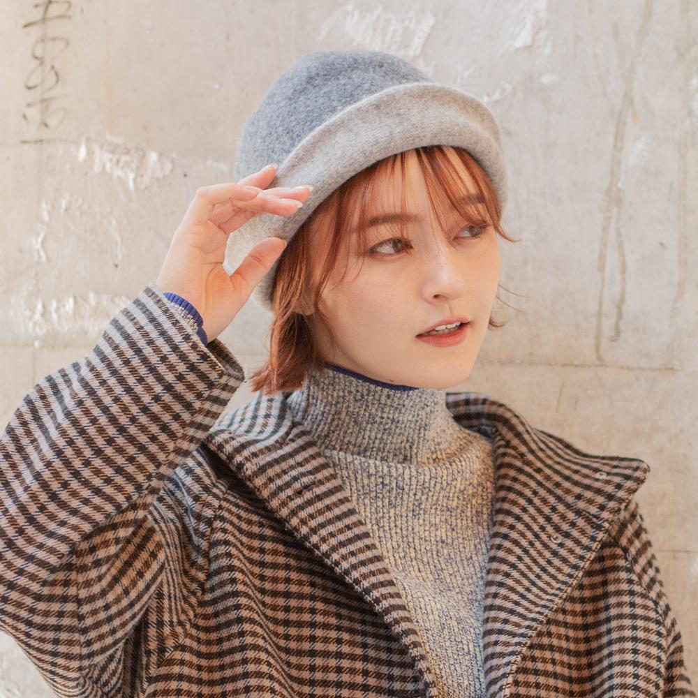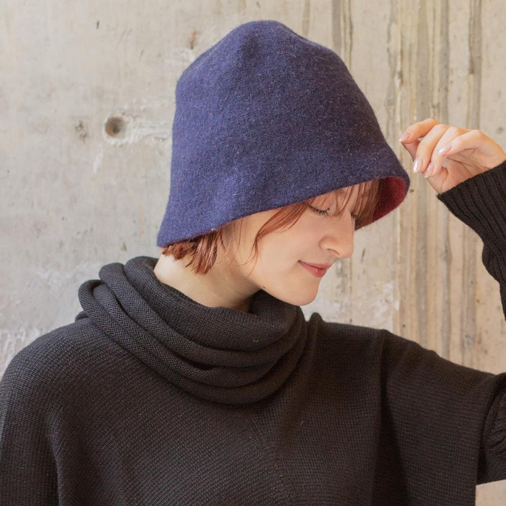 色んなかぶり方を楽しめるリバーシブルバスクハットです。リバーシブルなので裏返して違うカラーにしたり、前だけ折り返して裏のカラーをチラ見せしたり、被り口を全て折り返してトーク帽風に被ることも出来ます。毛100%の生地はやわらかい被り心地で頭に気持ちよくフィットします。