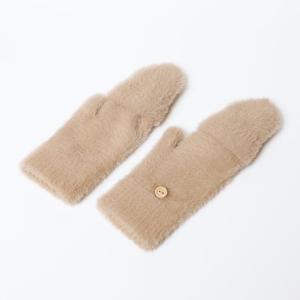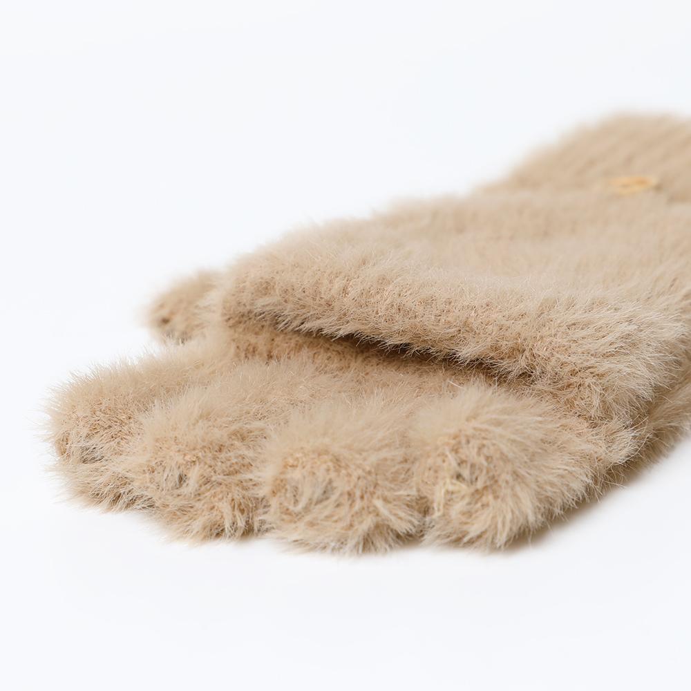 なめらかな手触りのシャギーウォームフード手袋です。手袋したままでも作業しやすい密着感のある着け心地で、指部分はフード仕様となっており使いたい時にすぐにタッチパネル操作ができるのが嬉しいポイントです!手洗いも可能なので、常に清潔にご使用頂けます。