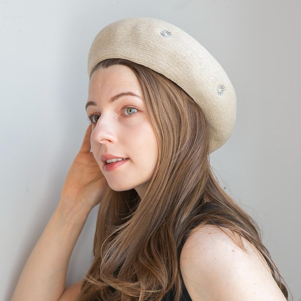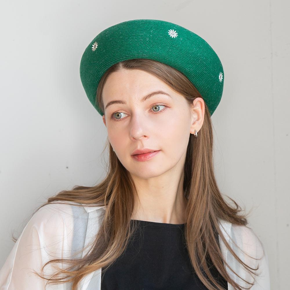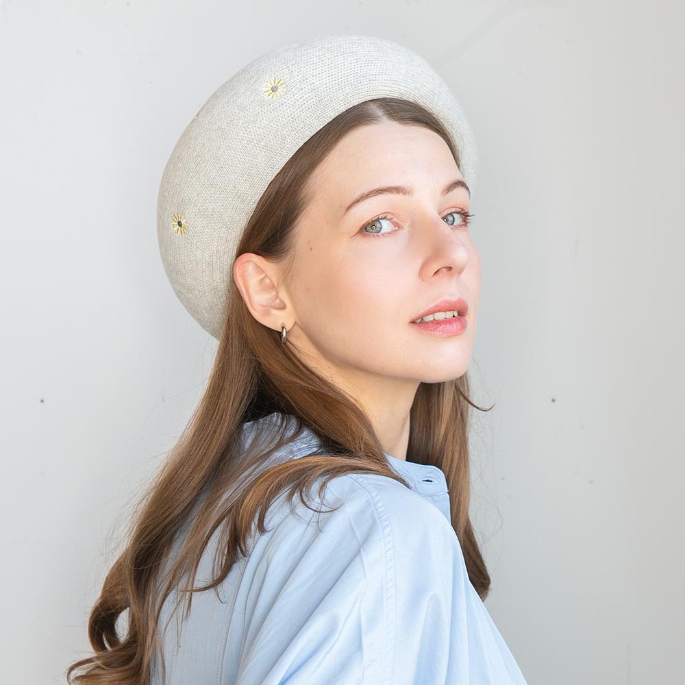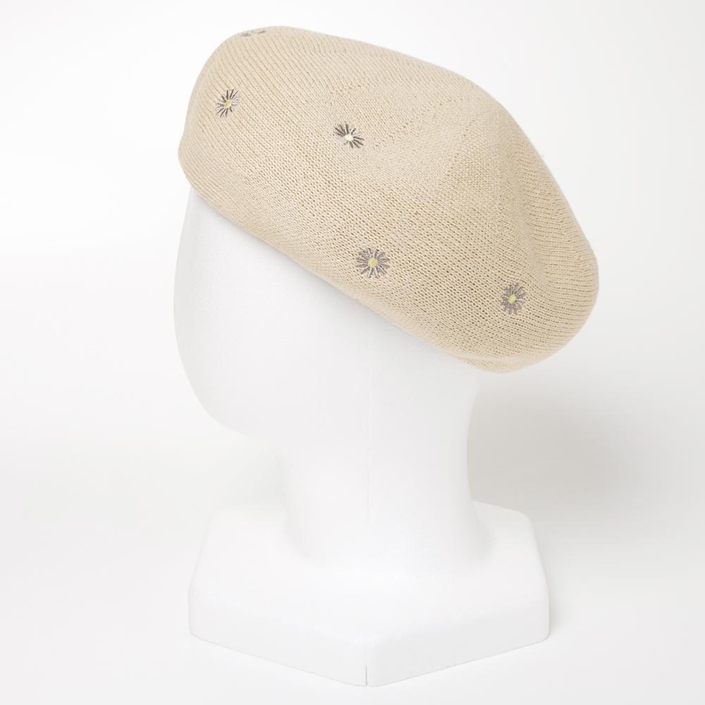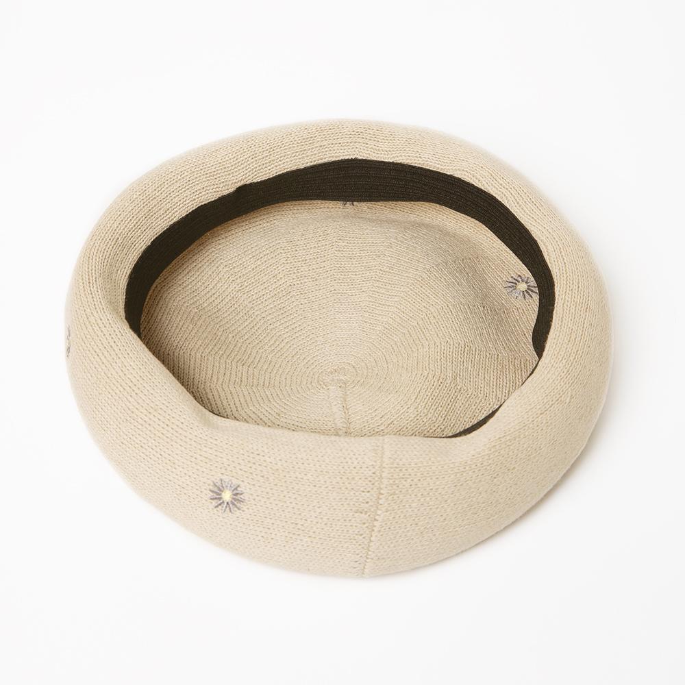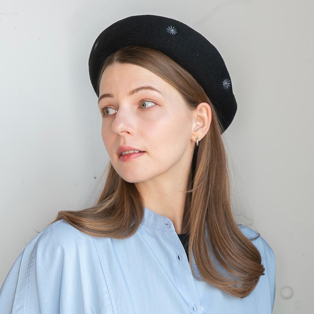 小花刺繍がかわいらしい春夏サーモベレーです。馴染みの良いカラーリングで刺繍がされており、派手になり過ぎず程よく顔周りを華やかにしてくれます。