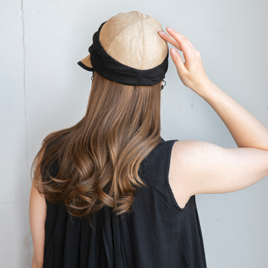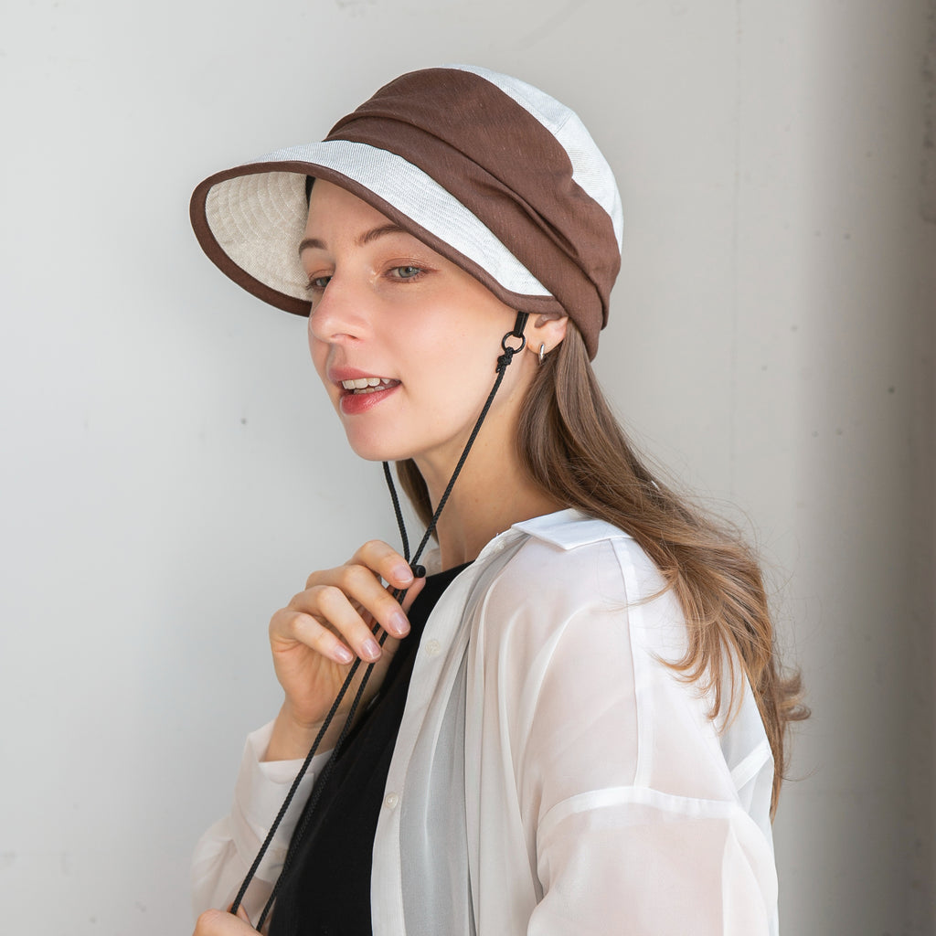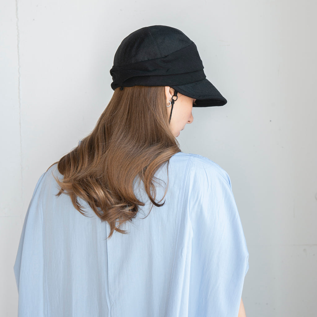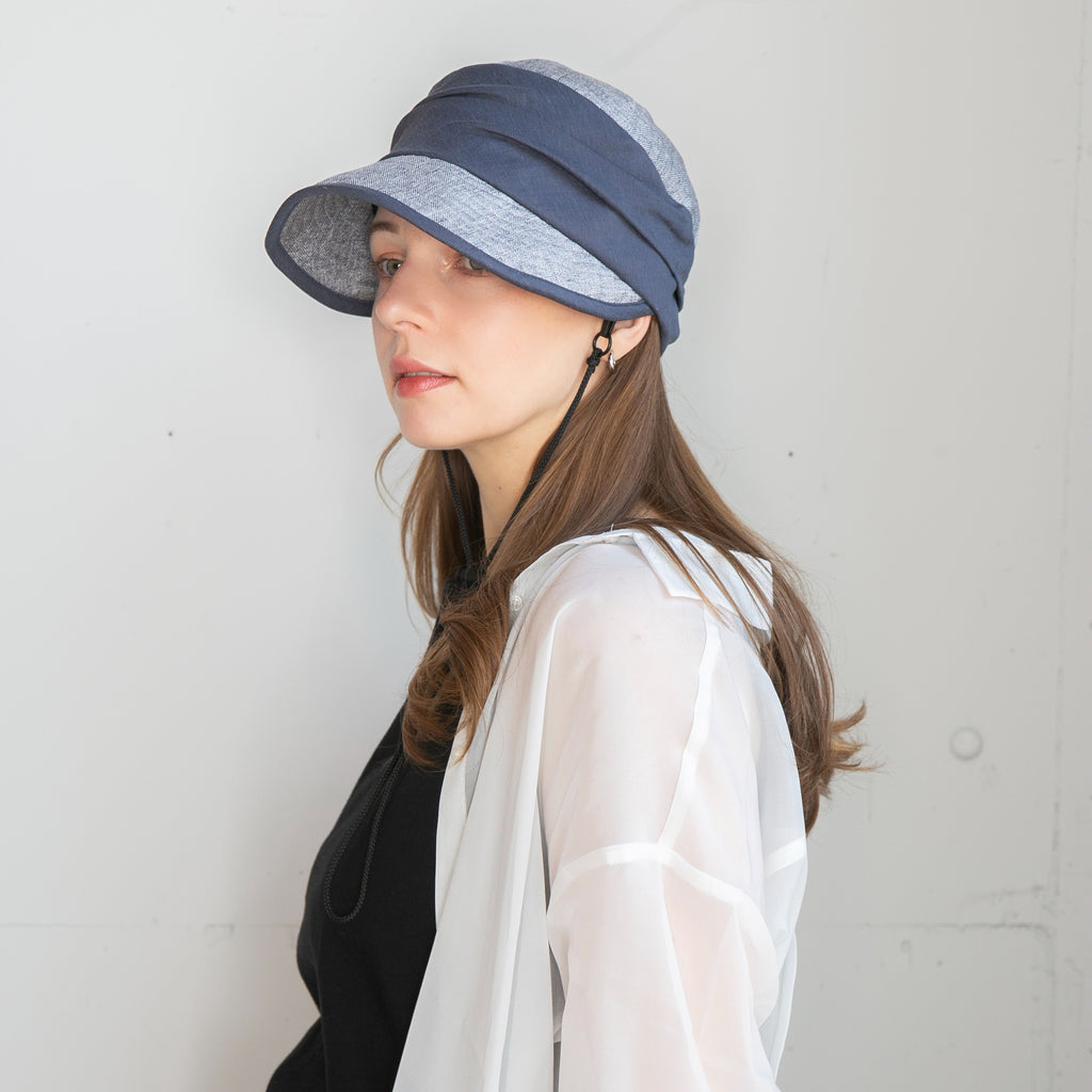 ポリジュートの素材とすっきりしたデザインが涼し気なジョッキーキャップです。ジョッキーキャップの特徴の下を向いた長めのつばで顔にしっかり日陰を作ってくれます。◎あご紐、日除け垂れ用ループ付き(日除け垂れはついていません。)◎内側にあるすべりの裏側には、サイズを調節して頂けるテープが付いていますので ご自分のサイズ感で被って頂けます。◎手洗いも可能なので、いつでも清潔に保って頂けます。