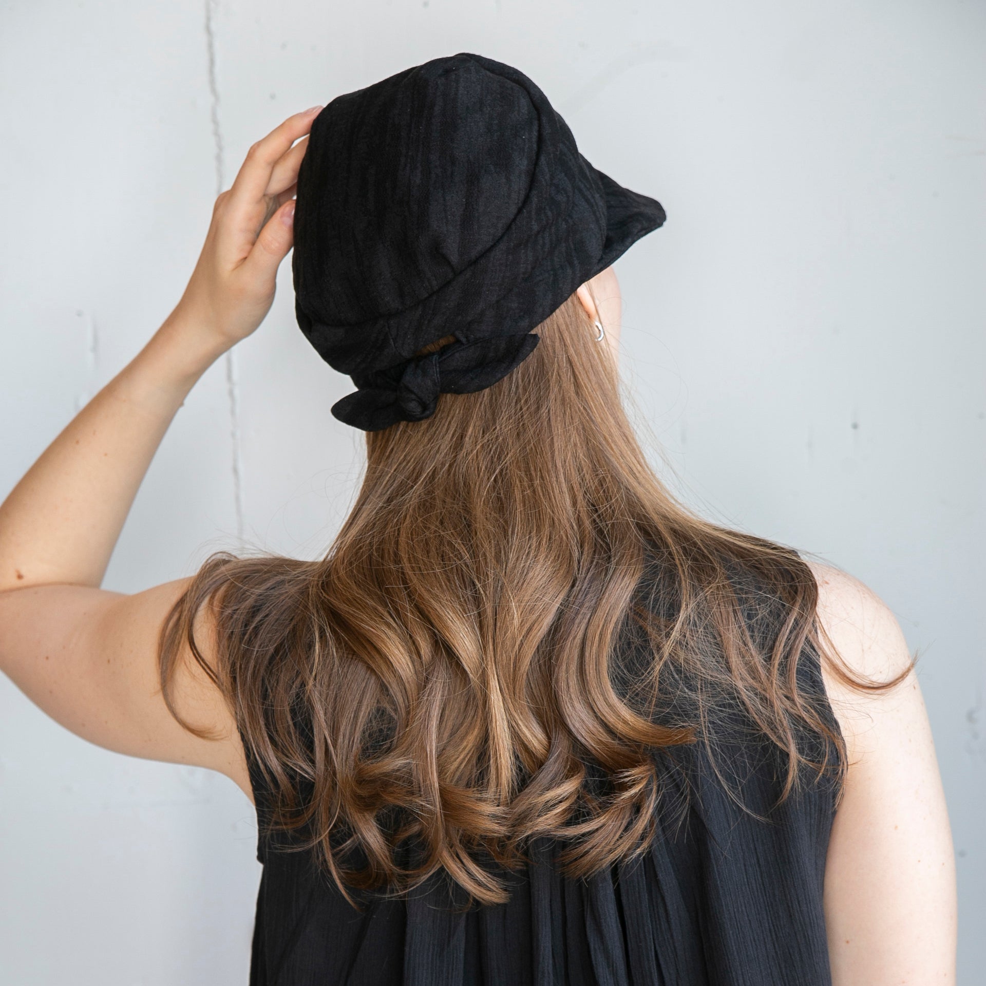 つばの縁にはワイヤーが入っていますので、日差しによってつば先の角度の調整が可能です。さり気ない後ろのリボンはワンポイントにもなります♪耳後ろまでつばがあるので、日差しもカットできます。