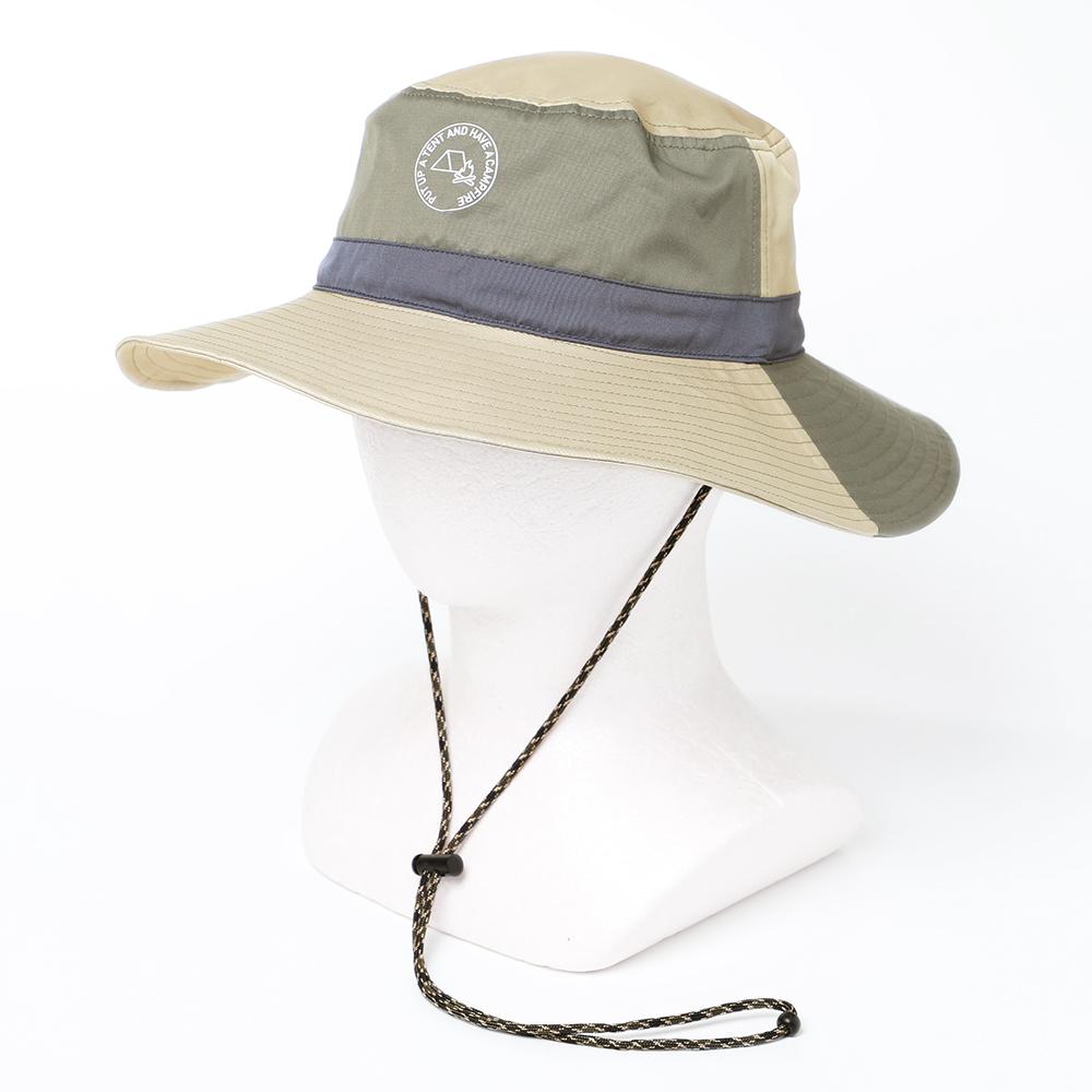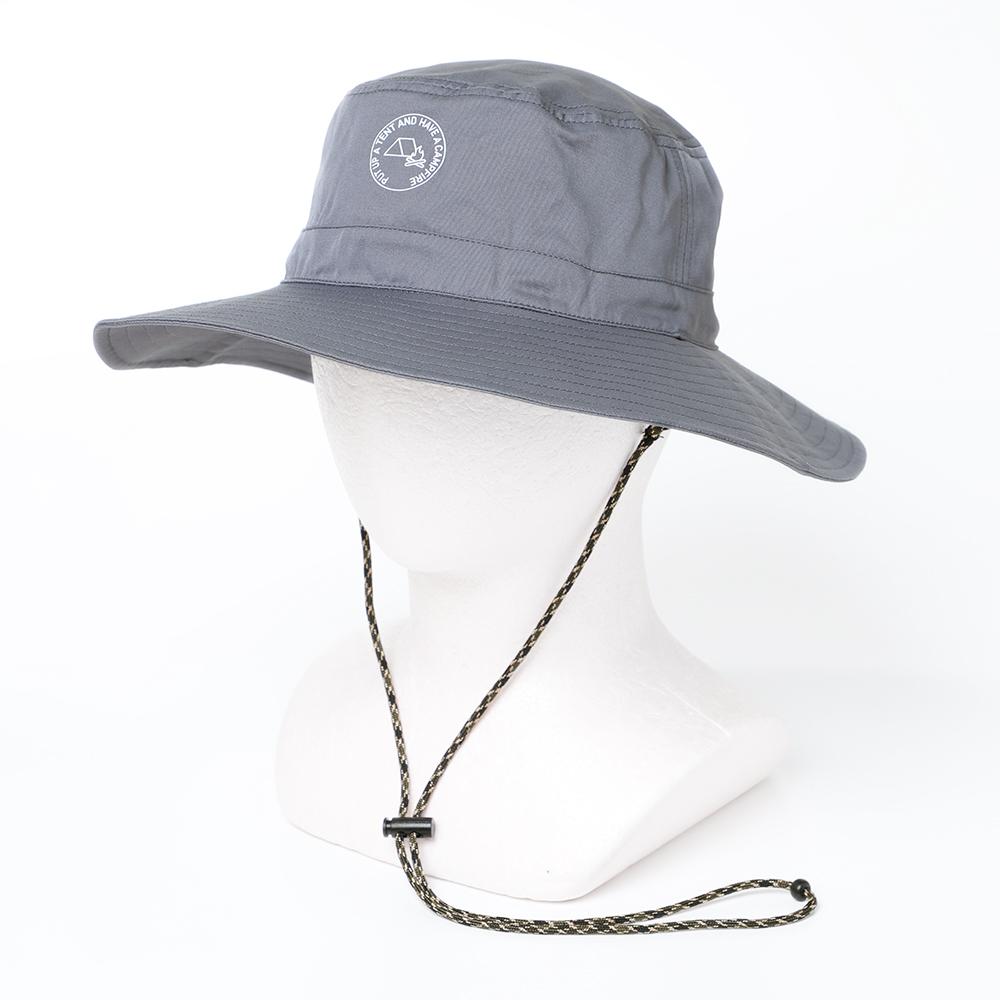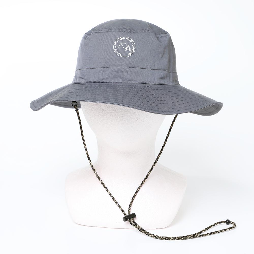 キャンプのロゴがかわいい撥水アドベンチャーハットです。あご紐もアウトドアコード仕様なのでよりキャンプコーデを引き立ててくれます。突然の雨にも撥水加工の帽子をもっていると安心!◎内側にあるすべりの裏側には、サイズを調節して頂けるテープが付いていますので ご自分のサイズ感で被って頂けます。(後ろのつまみでも多少のサイズ調整が可能です。)