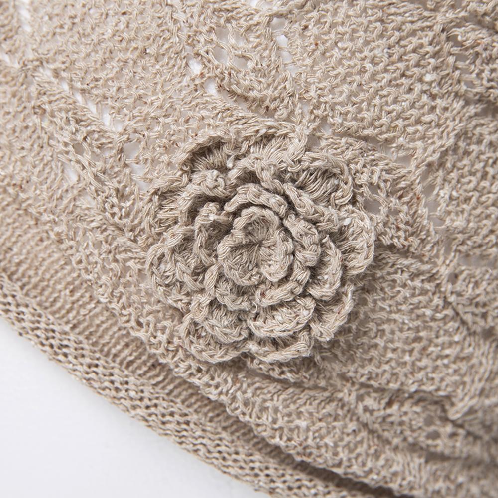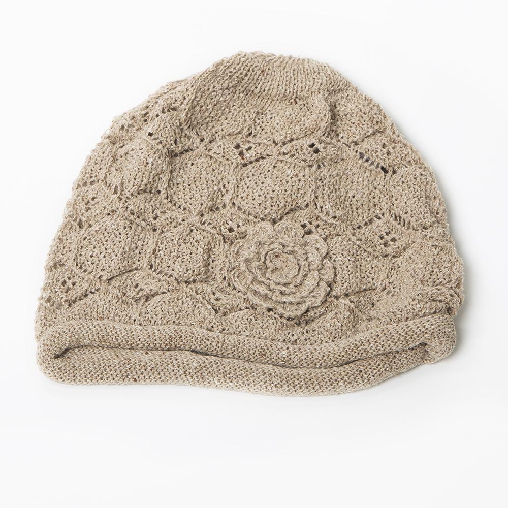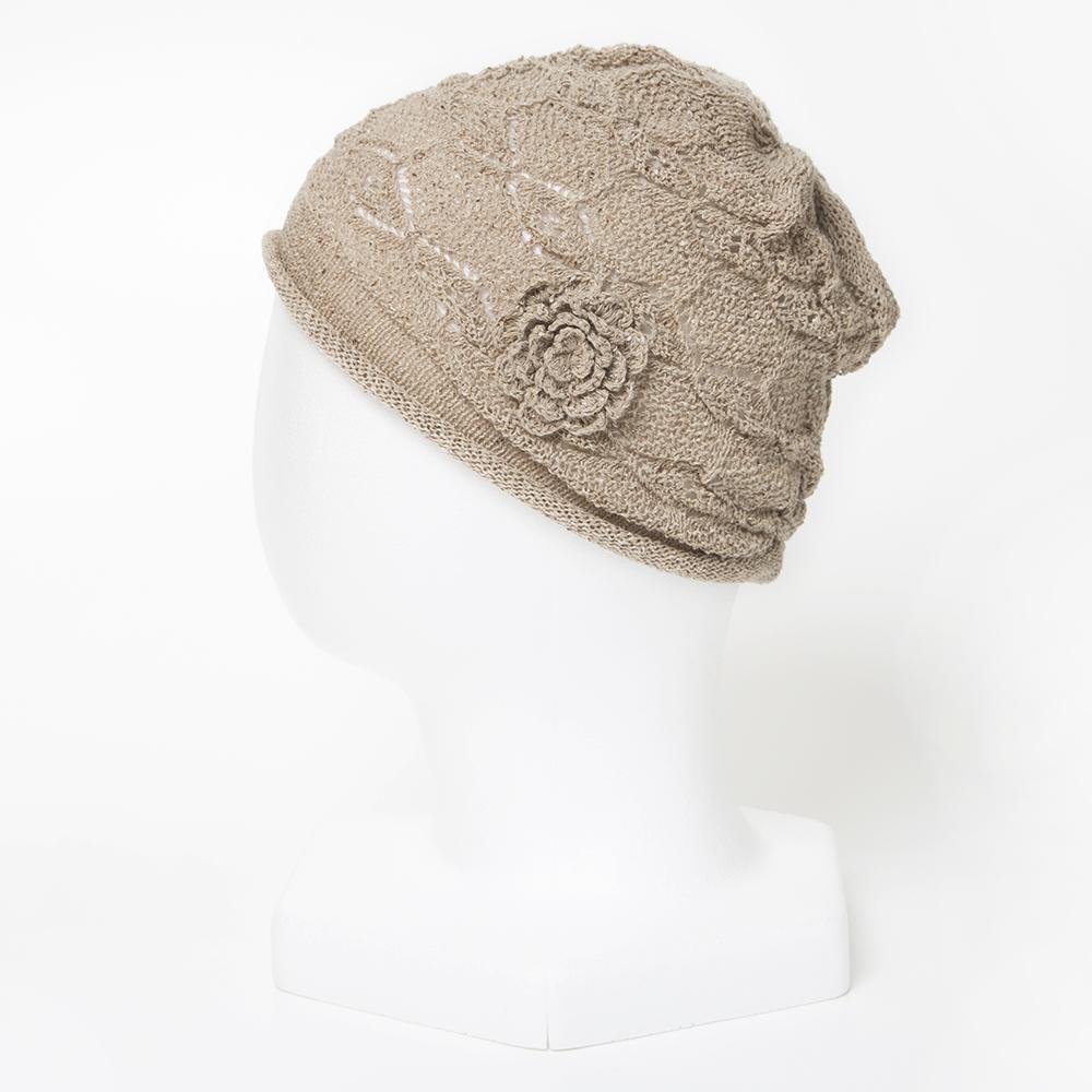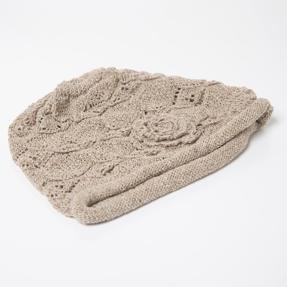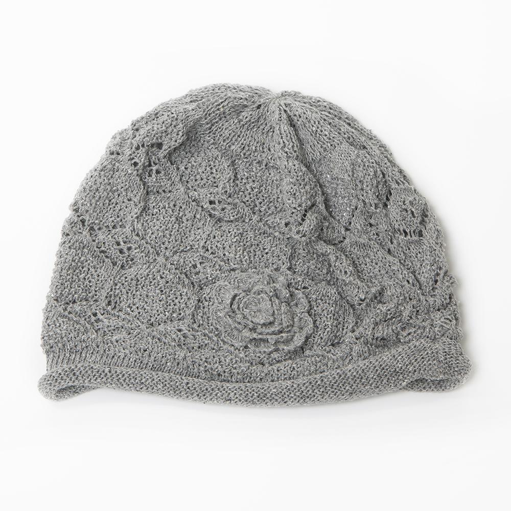 シルク100%の肌触りの良いニット帽です。良く伸びる被り口で締め付けがなく、透かし編みのためムレにくく快適です。さりげなく付いたお花が可愛いアクセントに!◎手洗いも可能なので、いつでも清潔に保って頂けます。◎軽量で柔らかい生地を使用しているため、小さく折り畳めて持ち運びにも便利なアイテムです。